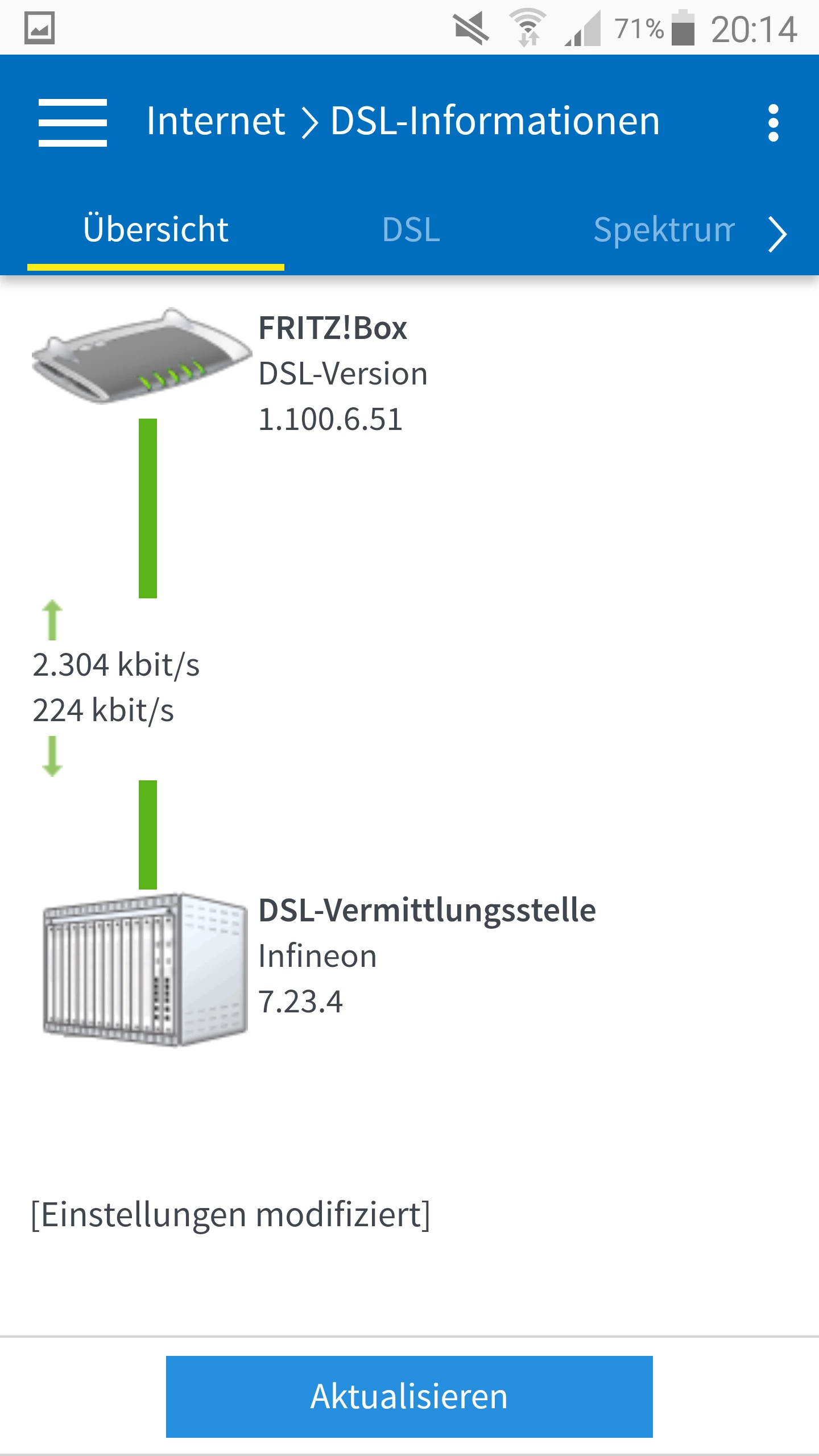 Okay auf jeden fall weiß ich jetzt woran es warscheinlich liegt. Es ist zwar ununwahrscheinlich das auf einem Dor auf Glasfaser umgerüstet wird aber was soll man machen.