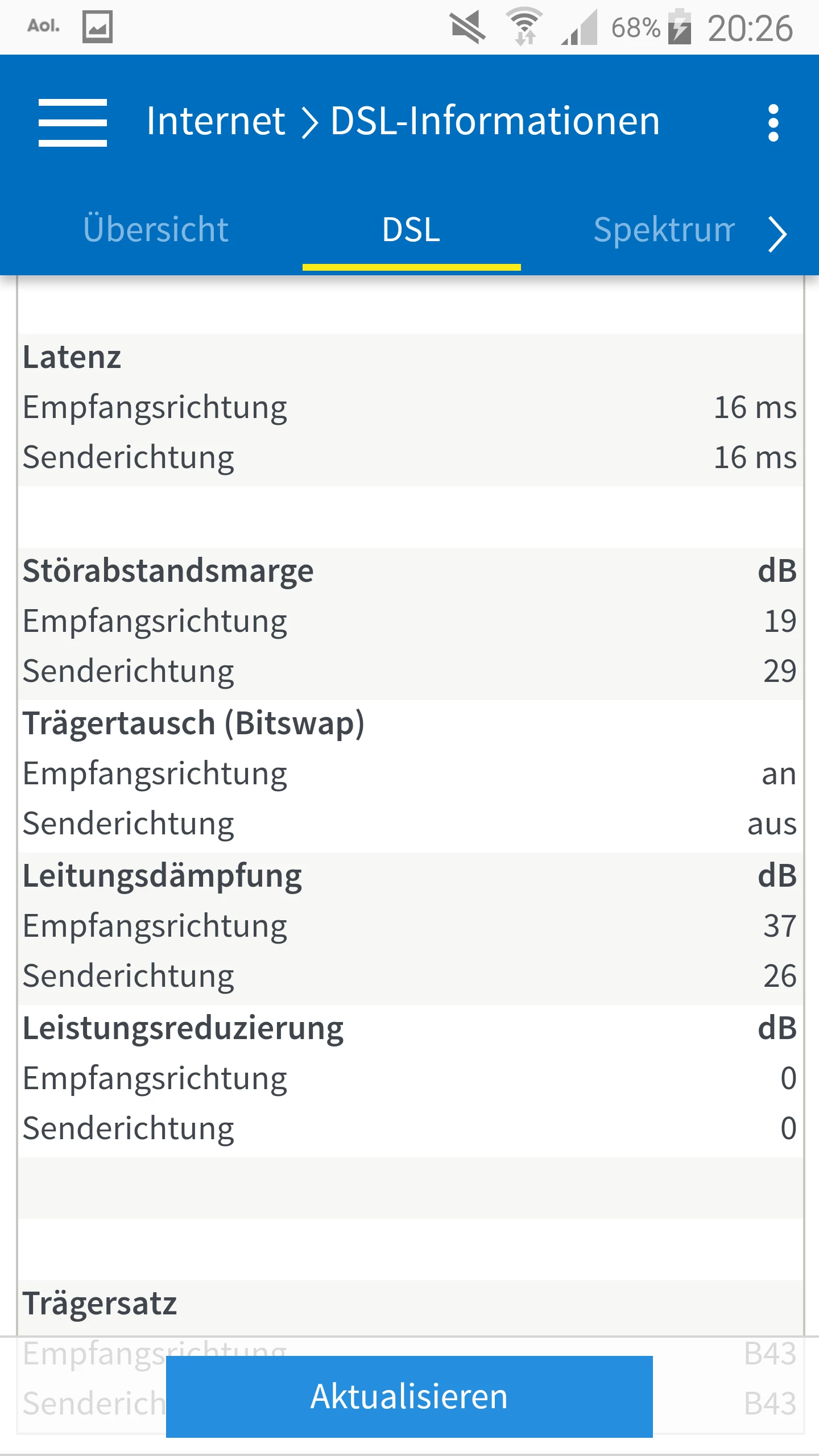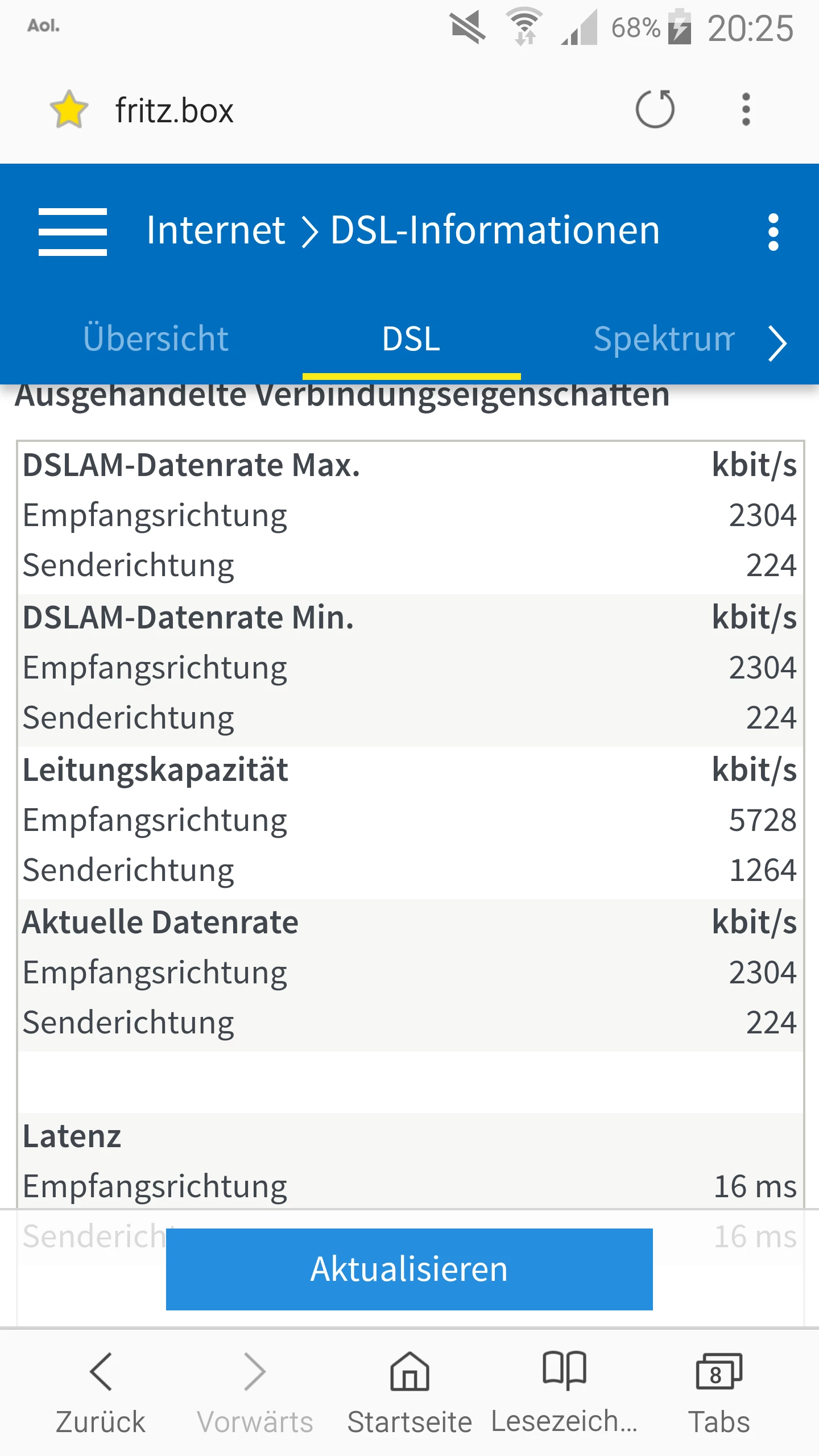 Der DSL Part fehlt. Mit den aktuellen Daten kann man deine Leitung nicht wirklich bewerten, nur schon mal festhalten das du Profilseitig auf 2304/224kbit/s (down/upstream) eingestellt bist.