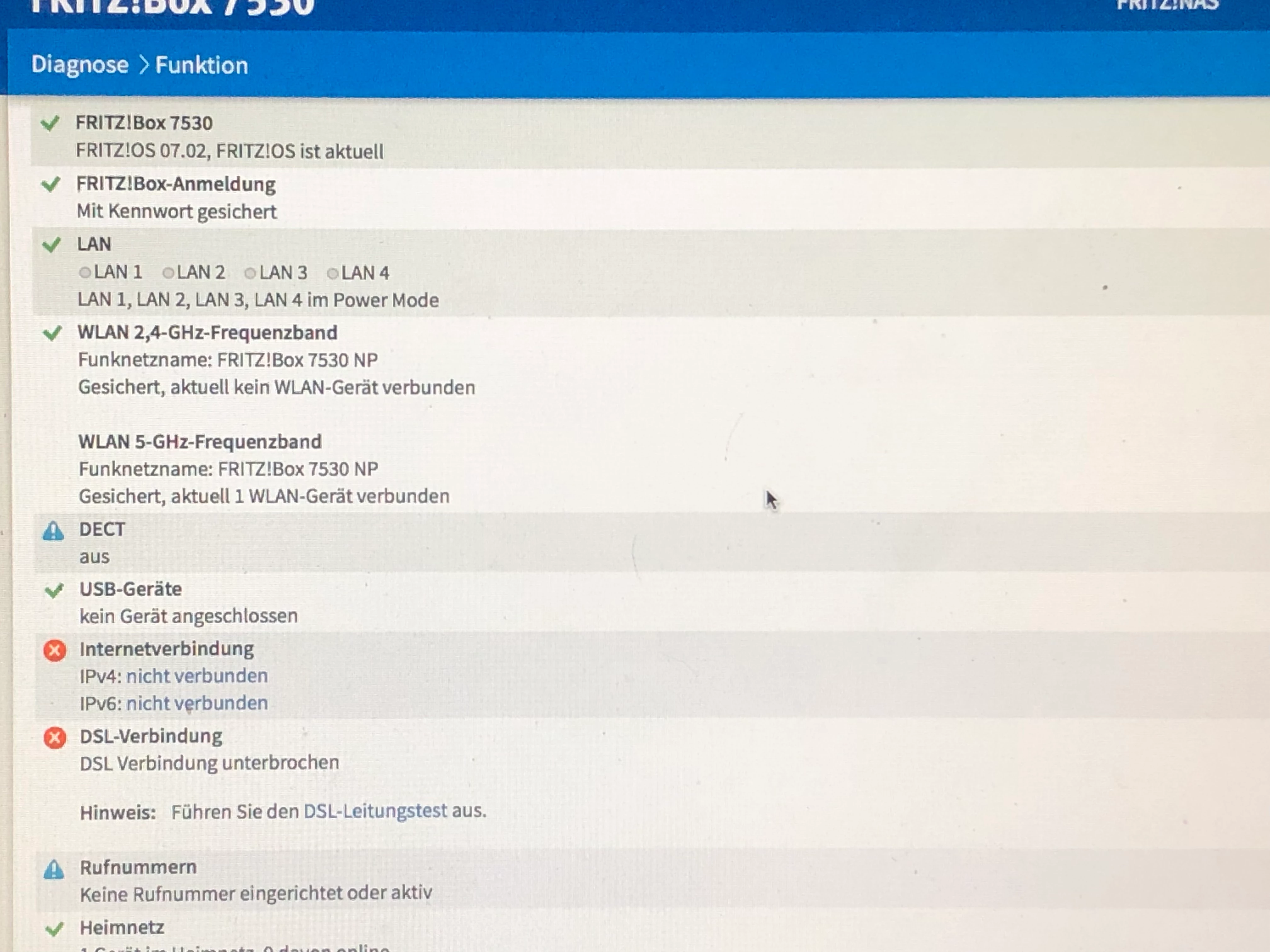 I bought a Fritzbox 7530 vdsl modem. My internet connection should be working since 25.01., that’s the date when it was brought online. Everything is working fine, except the internet connection, which is “gestorben”y 😞