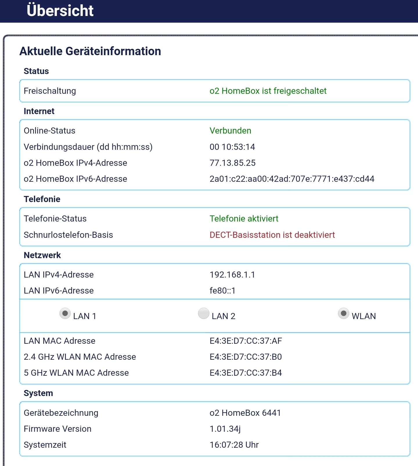 Hm. Dann muss es hier um einen anderen DSL Anschluss gehen, kann das sein? Zumindest unter der E-Mail-Adresse finde ich zwar einen DSL-Anschluss, an diesem ist aber keine 6441 aktiv und der Router des Anschlusses meldet eine Synchronisation von 100/40 zurück.