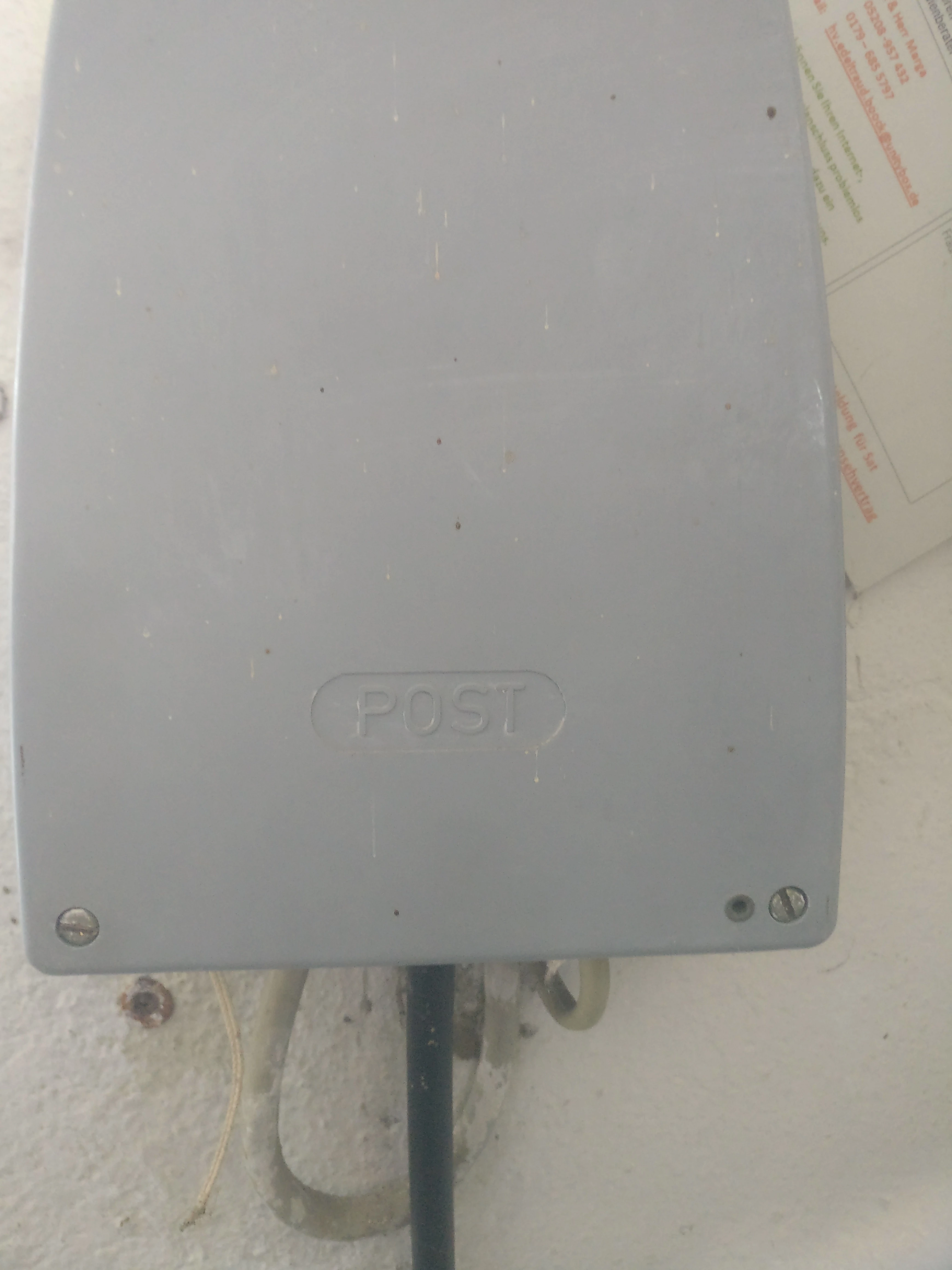die Telefonverteiler (APL) tragen meist ein großes "T " oder ein Posthorn oder Aufschrift POST und sind meist kleiner als Unitymedia-Verteiler.