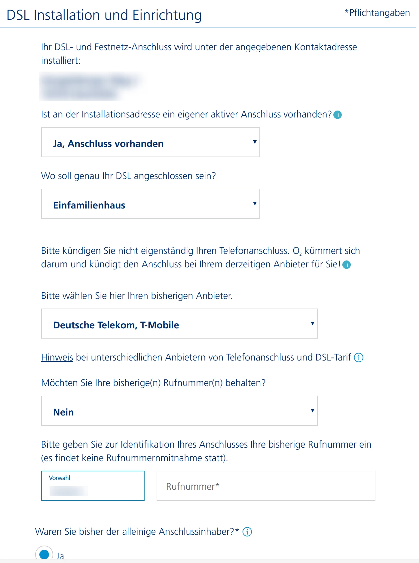 Ich hatte vorgestern telefonisch bei o2 nachgefragt, welche Option (Anschluss vorhanden / Kein Anschluss vorhanden) ich wählen soll.