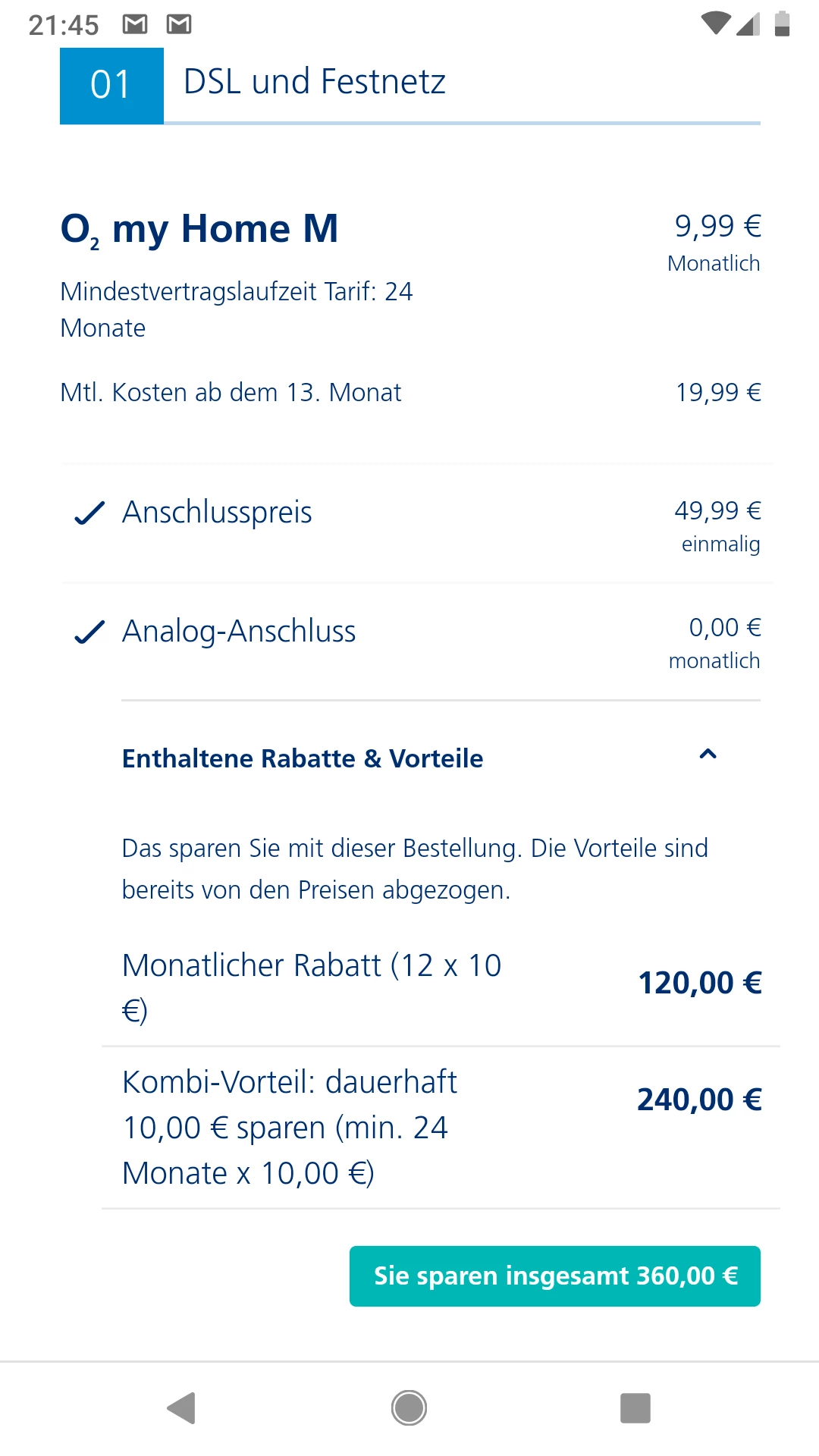 Bei deiner gewählten Tarifkombination besteht ein Anrecht auf 10 EUR Kombi-Rabatt.