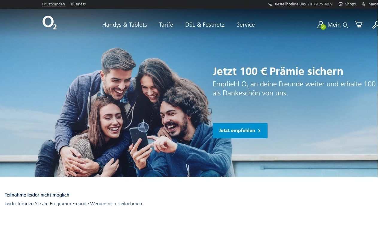 @o2_Andrea Bei deiner verlinkten Seite kommt dann "Leider können Sie am Freunde werben nicht teilnehmen"