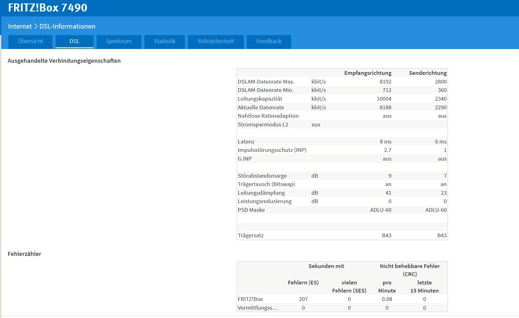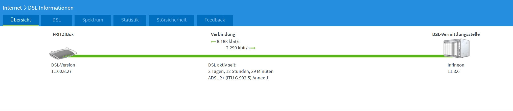 Über die vormalige Konfiguration (incl. ebenfalls diese 2 Switche und Ethernetverkabelung) mit der Fritzbox waren ADSL Mbit-Raten von über 18Mbit/s möglich.