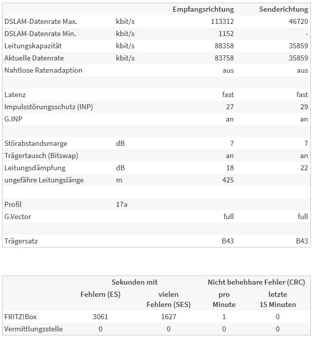 Meine Fritzbox 7580 liefert die folgenden Werte.