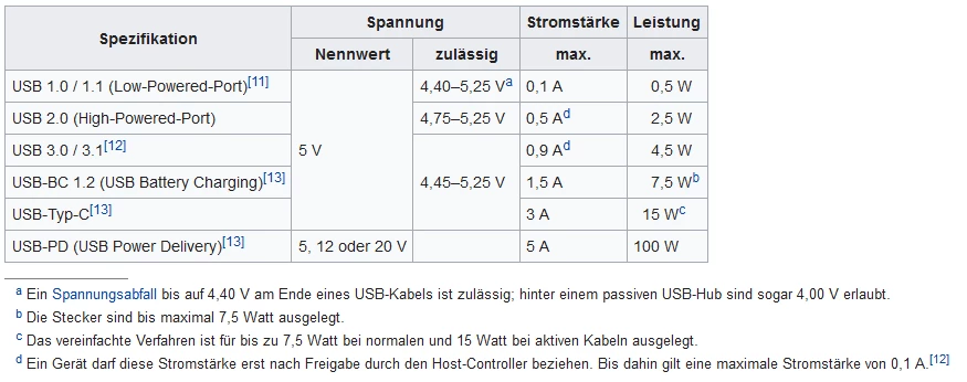 Maximal Leistung vom USB Anschluss