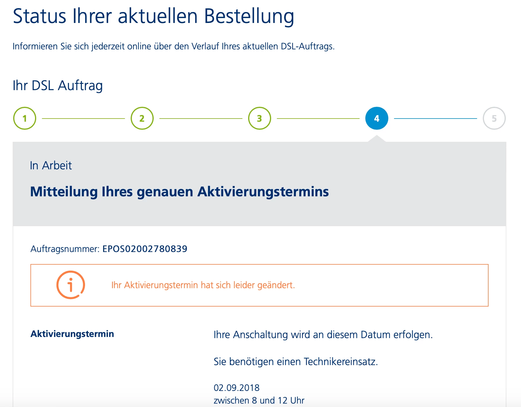 am 1.8.2018 sollte mein Anschluss geschaltet werden. Es hat insgesamt vier Terminvereinbarungen gebraucht, bis der Techniker dann auch mal wirklich kam.