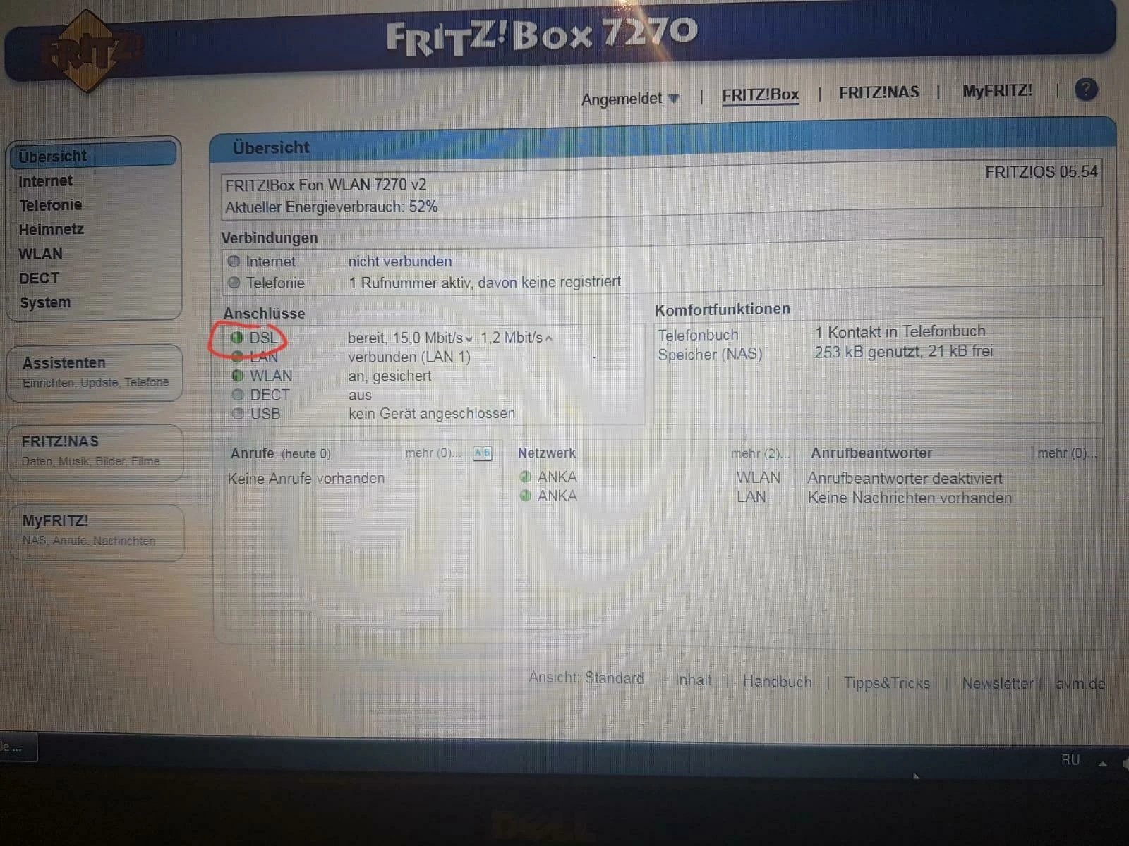 DSL-Signal angezeigt.
