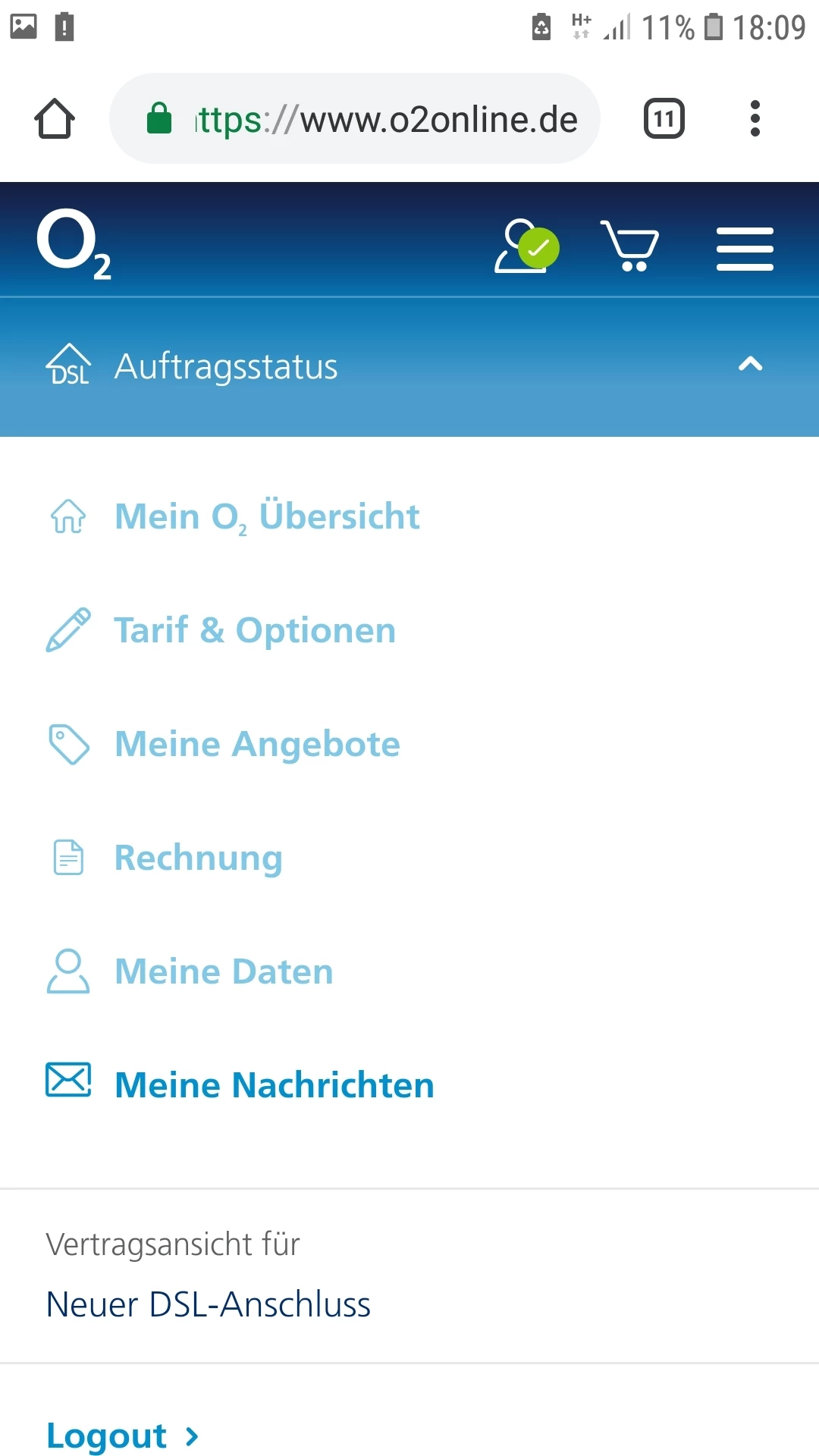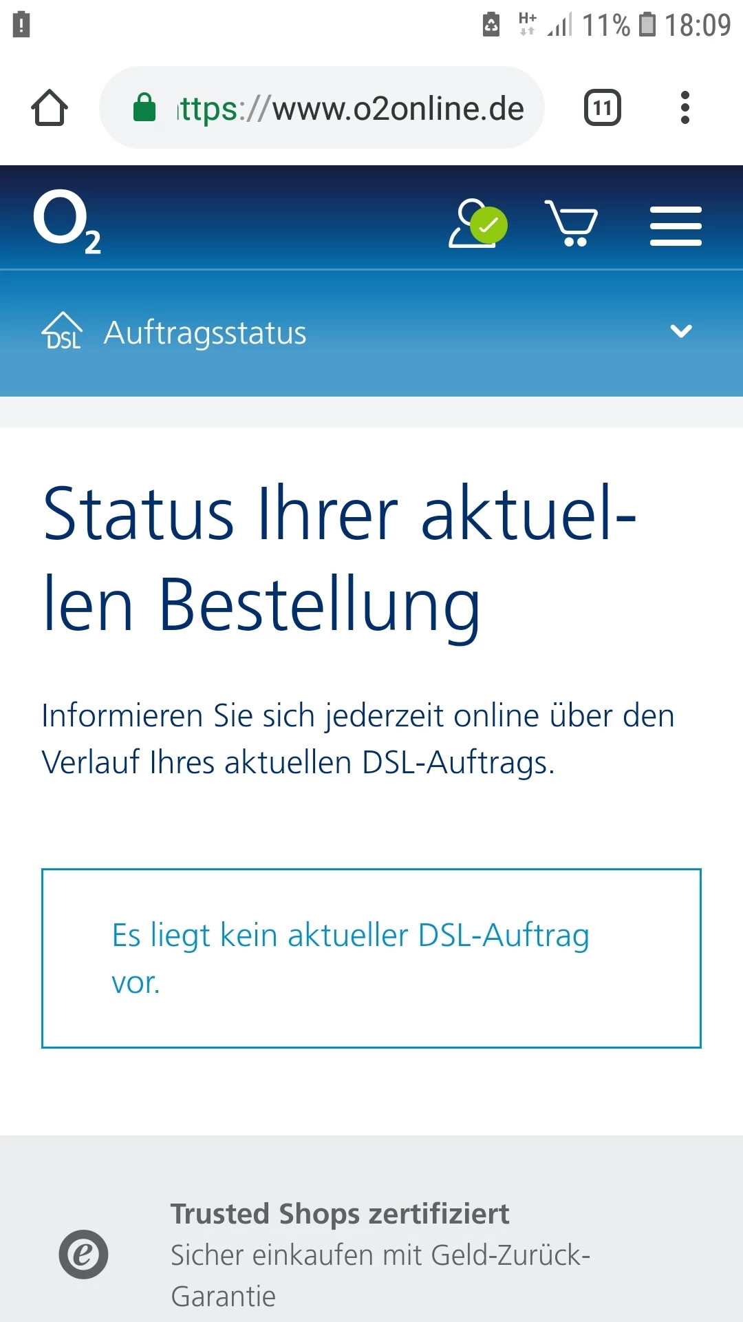 Warum sehe ich den Status meines Vertrags nicht in meinem Mein-O2? Ich sehe "Es liegt kein aktueller DSL-Auftrag vor".