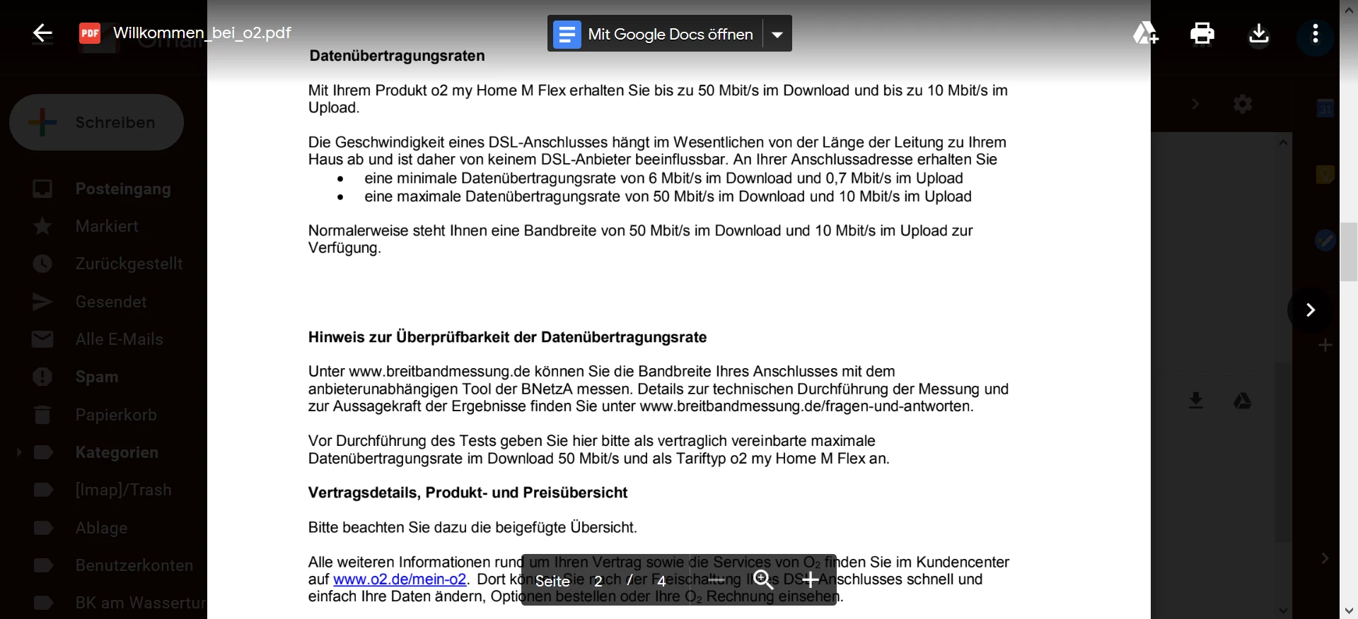 Anbei ein Screenshot der Fritzbox (Reiter DSL) und ein Auszug aus den Vertragsunterlagen.
