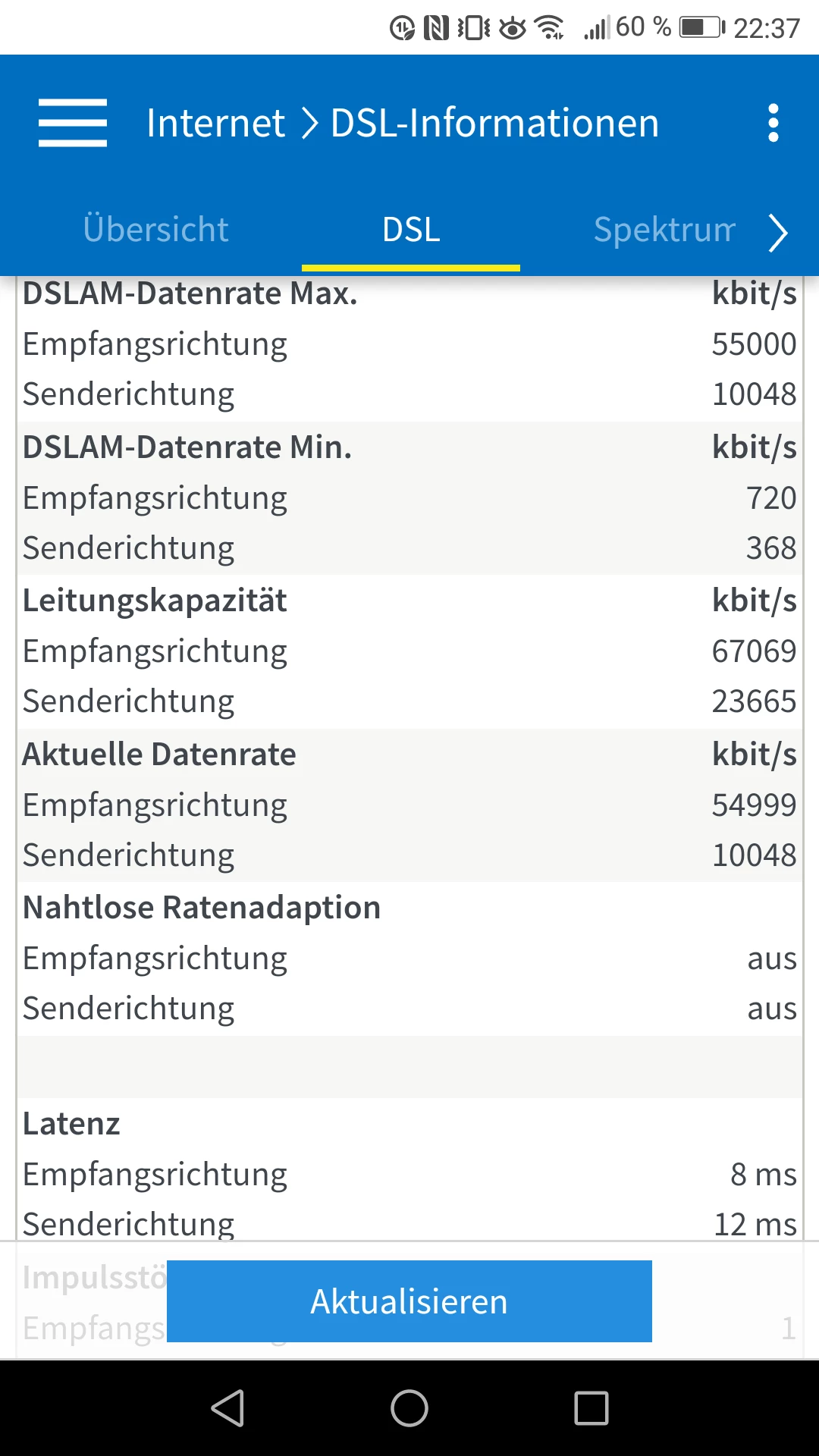 Seit neuestem synchronisiert sich die Box mit 55.000. Die Leitung wird jedoch noch von o2 gedrosselt. Per LAN sind, wie vorher, nur ca 23.000 möglich.