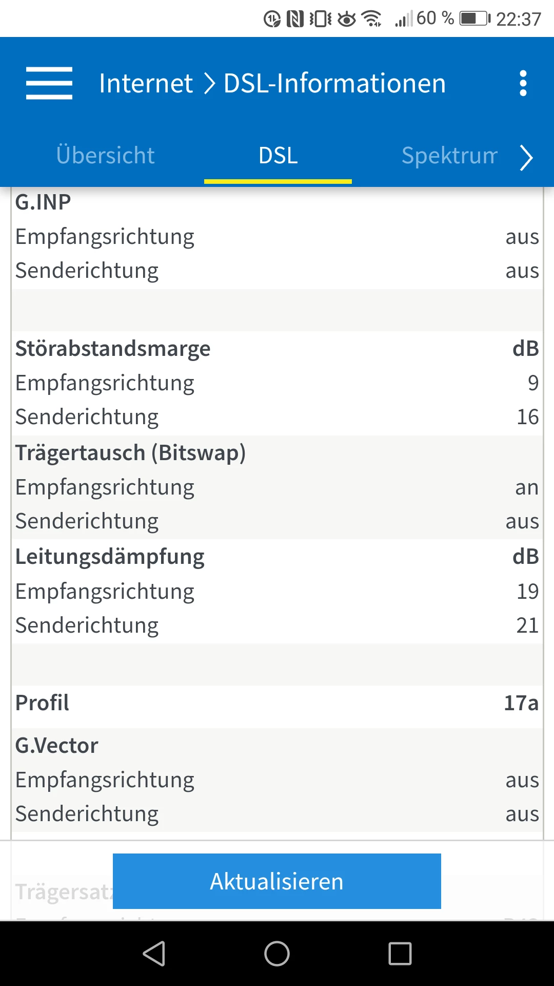 Vermutlich ist die Leitungsdämpfung aber zu hoch. Würde ein 50 Mbit Profil geschaltet, würde sich die Dämpfung erhöhen und der SNR sinken (Störabstandsmarge).
