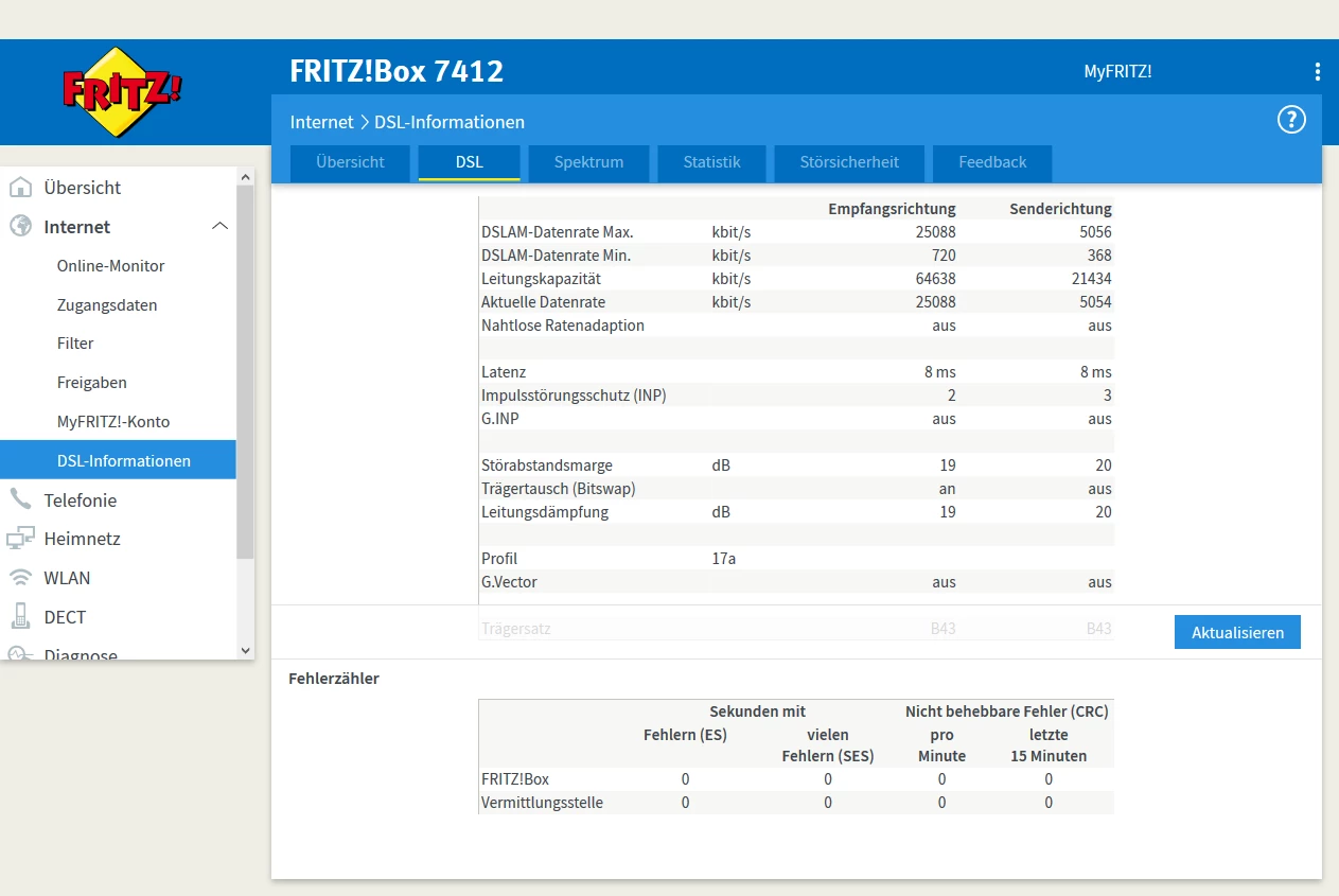 Was eine maximale (bedingt durch die Telekom) auf 50 Mbit festsetzt. Das Profil wurde unabhängig von der Leitungskapazität auf 25 Mbit vernagelt.