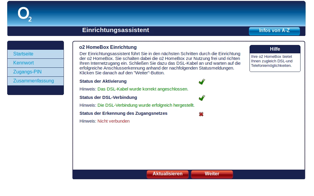 15. Oktober: Die neue Homebox 6441 (von O2 gesendet) wurde online mit Port verbunden. "o2.box" gibt es folgenden Fehler: