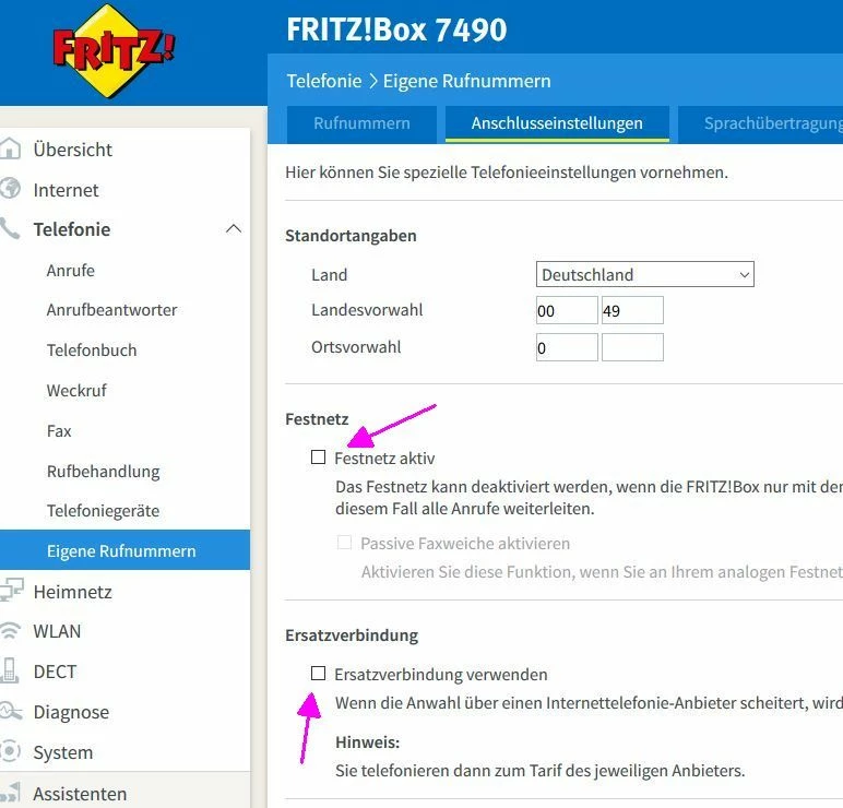 Umstellung ?...hattest du einen "Technologiewechsel" und die Telefoniedaten selbst eingeben ?