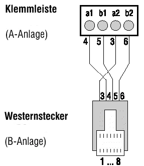 weiß jemand, in welcher Reihenfolge die Kabel für ein ISDN-Gerät in die Klemmen des S0-Bus kommen? Im Handbuch steht: Die Klemmen sind von links nach rechts durchnummeriert, aber ist das von der Gerätevorderseite aus gedacht oder von hinten? Weiterhin steht a1 (rot), b1 (schwarz/blau), a2 (weiß), b2 (gelb). So habe ich das jetzt geklemmt, wobei ich von links nach rechts von der Geräterückseite aus betrachtet habe, es funktioniert aber nicht. Bevor ich jetzt weiter Möglichkeiten durchprobiere, gibt es hier vielleicht jemanden, der sich auskennt und das weiß?