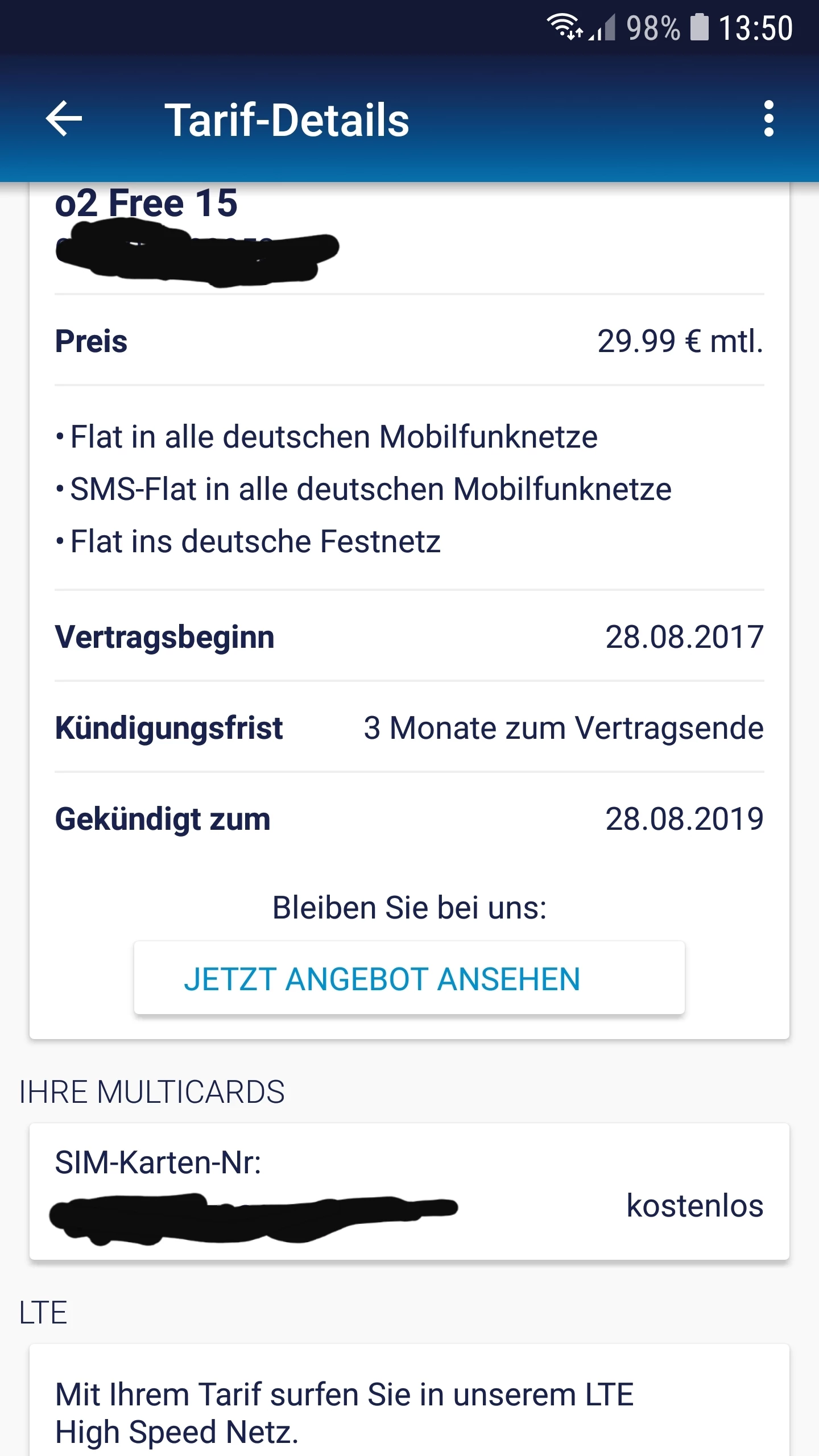 Hallo, habe fristgerecht DSL M gekündigt und letzte Woche auch eine Bestätigungsmail erhalten. Allerdings wird mir in "Mein O2" Bereich die Kündigung nicht angezeigt. Hatte vor ein paar Monaten auch mein Handyvertrag gekündigt und dort wurde die Kündigung direkt angezeigt. Ist meine DSL Kündigung offizell eingegangen? In der Mail stand auch nichts was mit dem Router passiert/ob ich es zurück schicken muss.