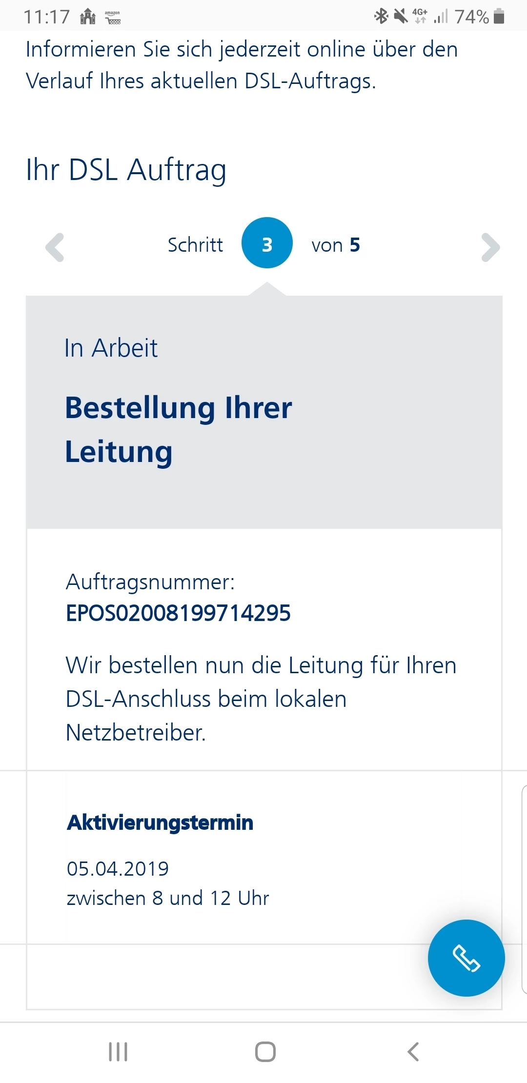 Moin, ist es normal das die Bestellung der dsl leitung beim Netzbetreiber so lange dauert? Auf dem Punkt drei steht es nun bestimmt schon 14 Tage... Habe noch einen Schreenschot gemacht damit es vielleicht etwas verständlich ist.