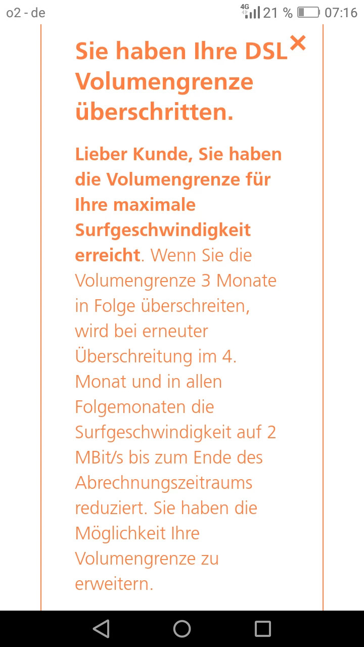 O2 DSL XS - Datenvolumen überschritten