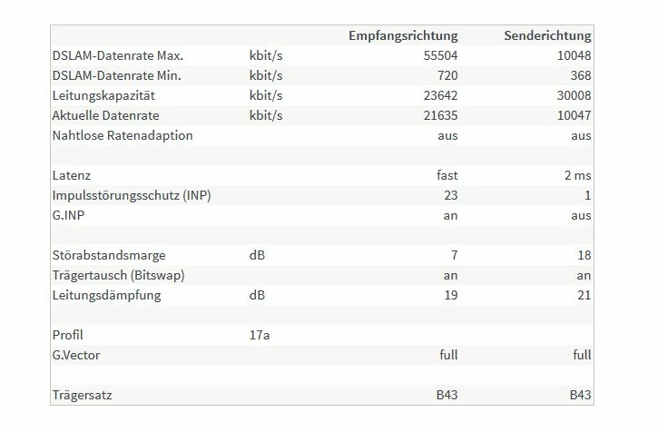 Leider blieb die Bandbreite bei 21 Mbit.