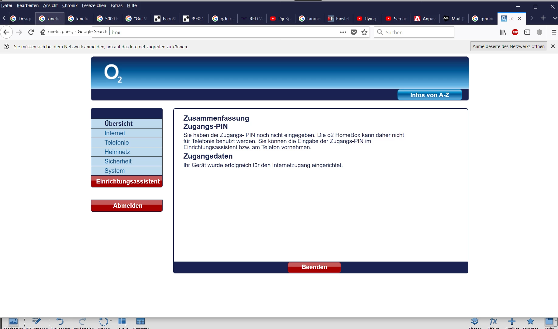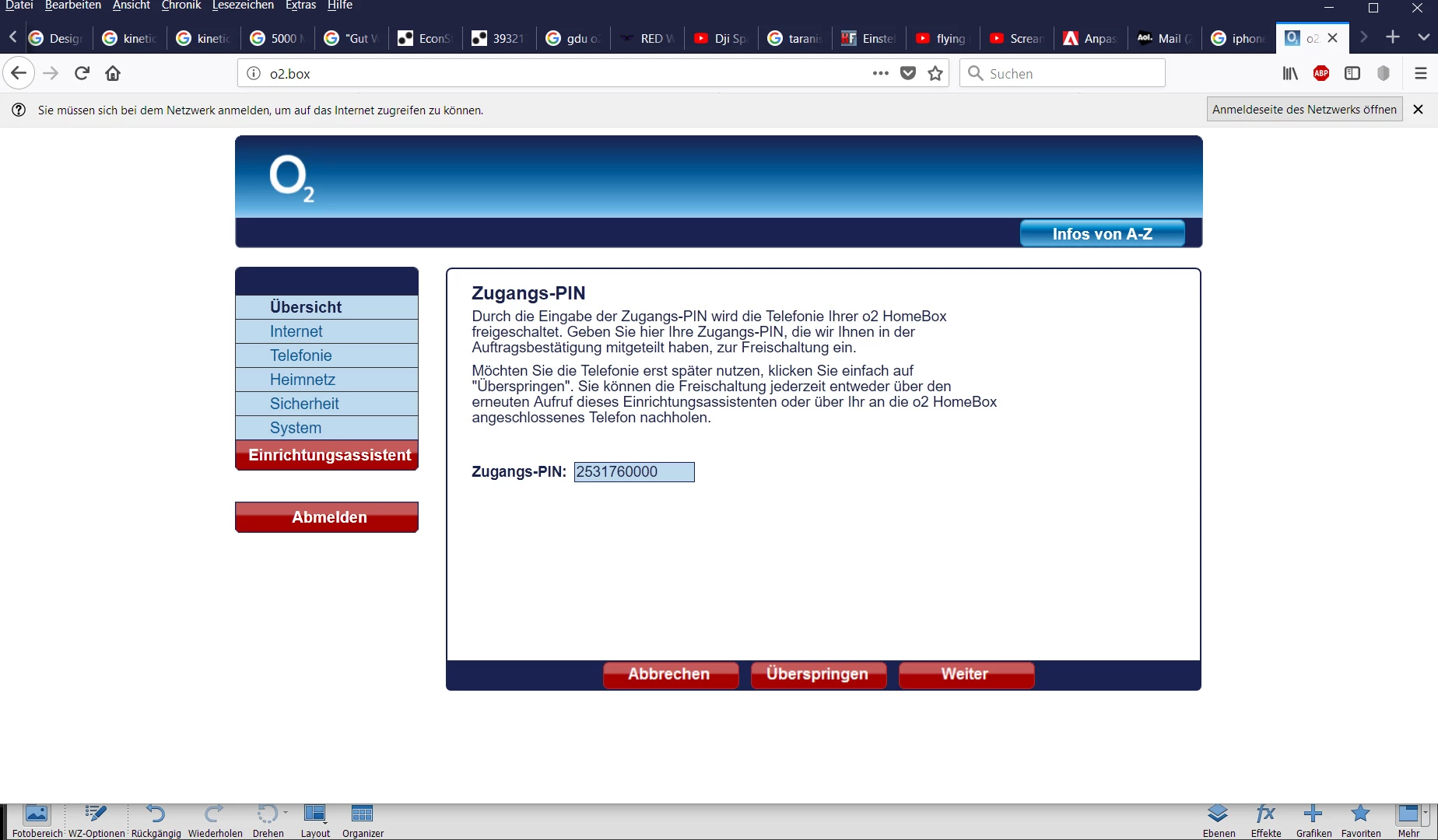 auch ich habe bis 18:00 gewartet und dann versucht anhand der Zugangs-PIN mich sowohl per Telefon, als auch per O2-Box freizuschalten, aber die Zugangs-PIN wurde nicht akzeptiert, ich habe dann den Router nochmal RESETTET und die Zugangs-PIN wurde wieder nicht akzeptier. Ich habe es heute morgen wieder versucht, mit dem selben Ergebnis!.