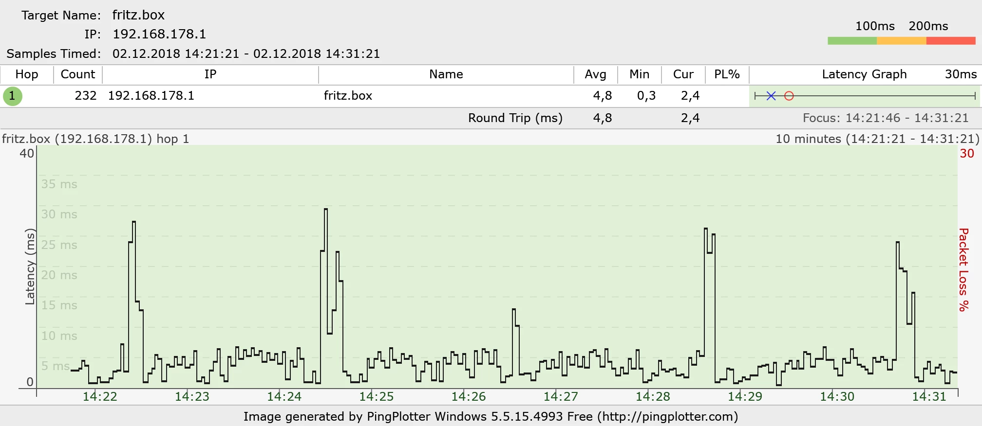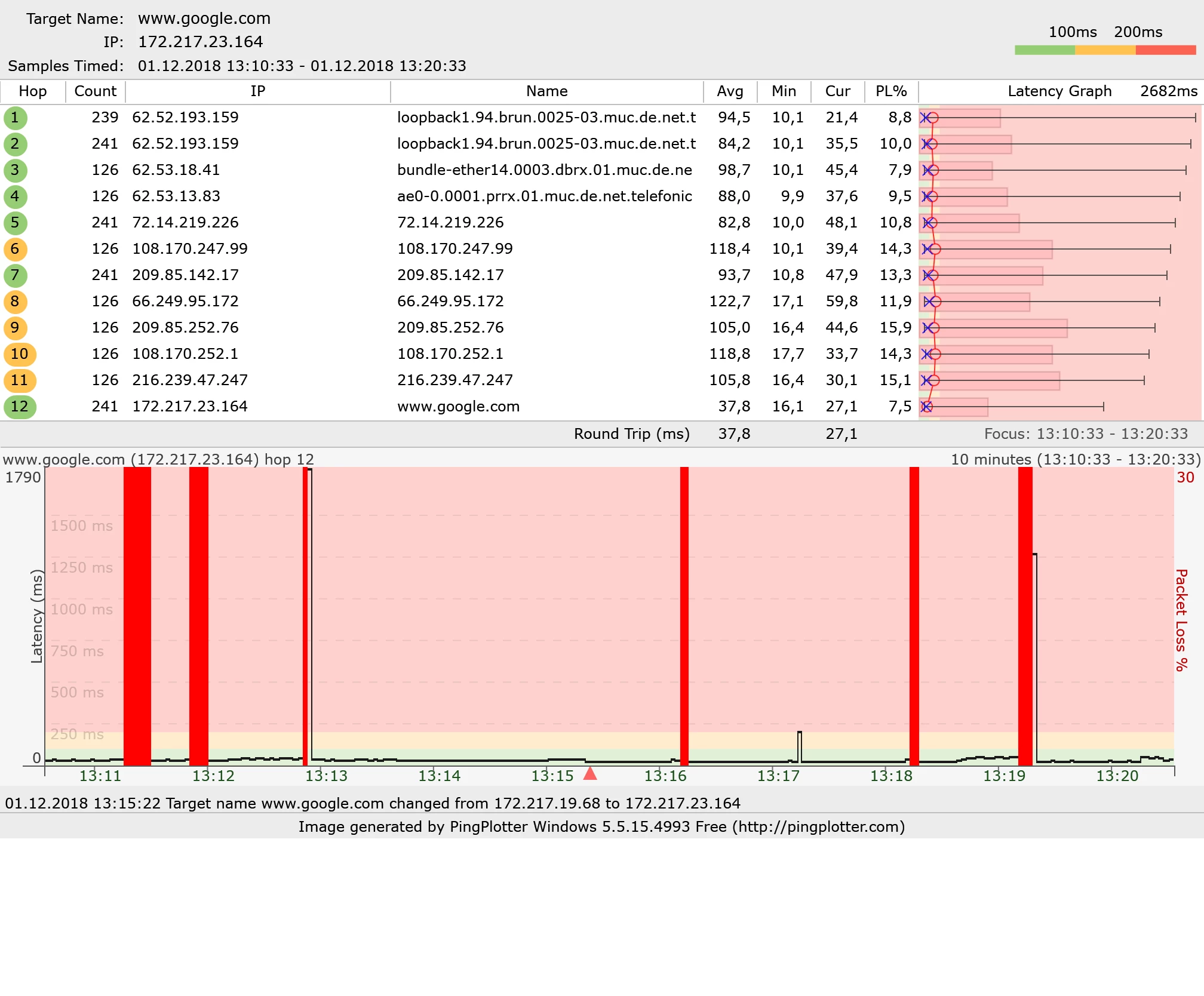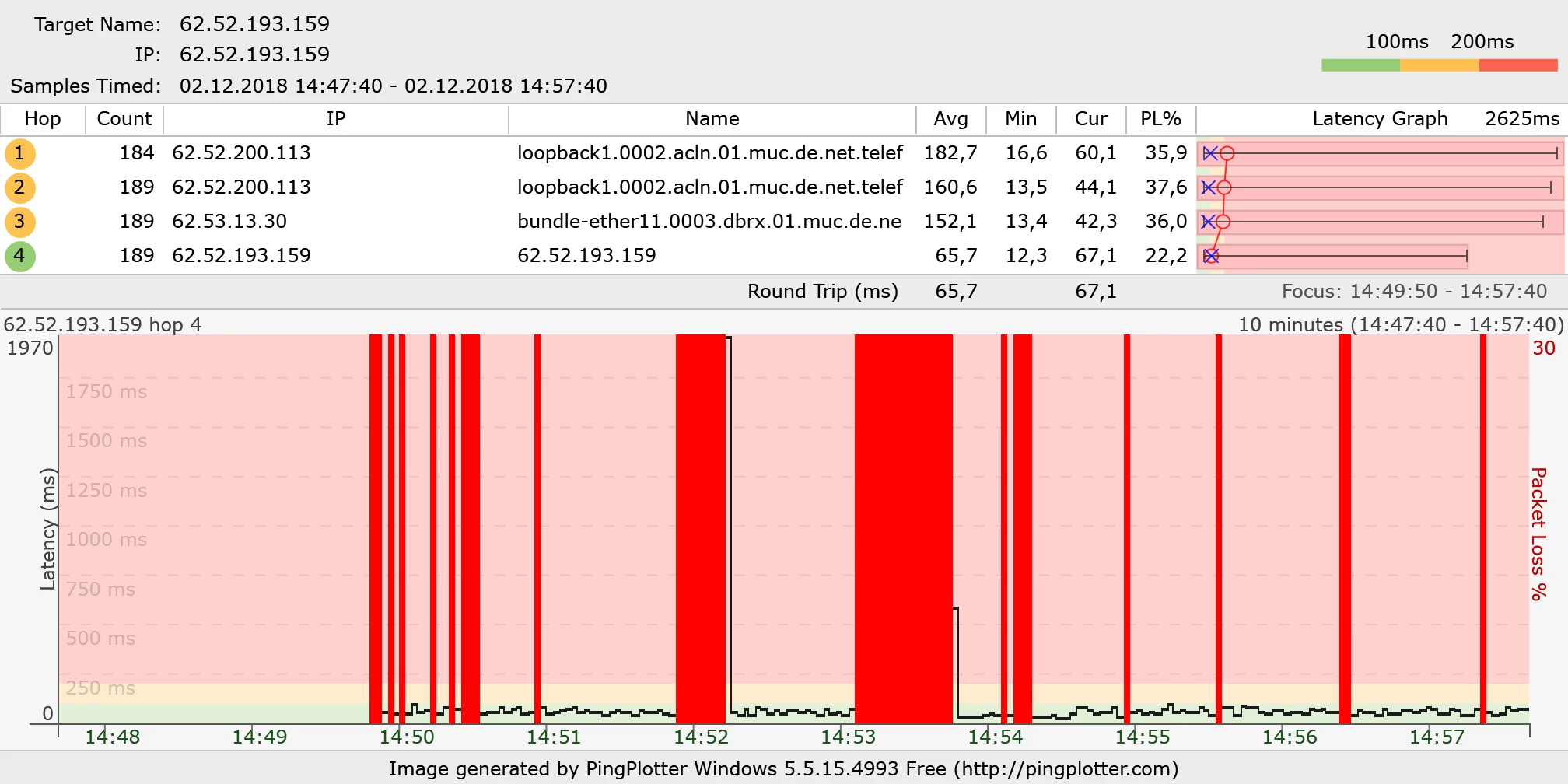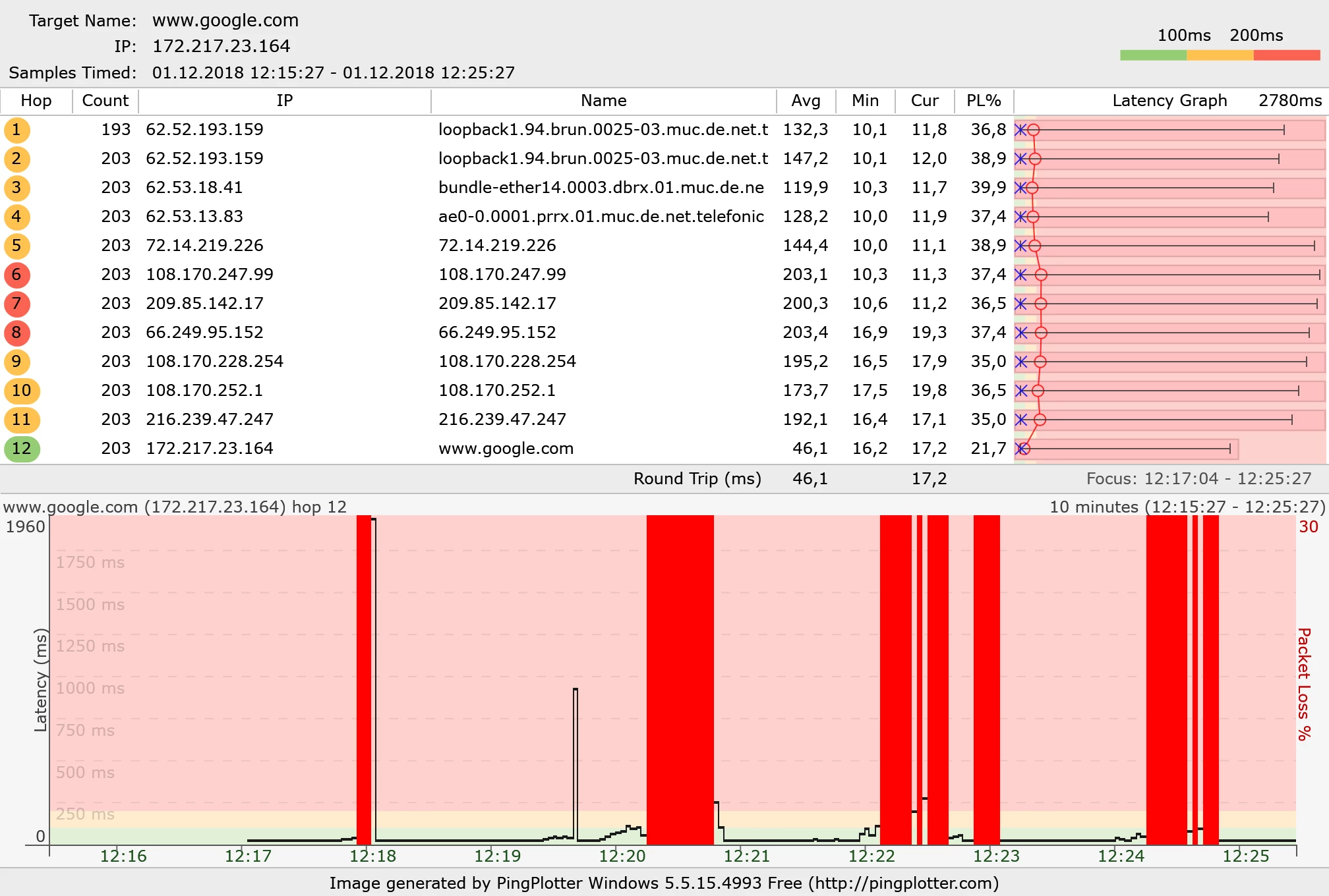 Habe mal mit dem PingPlotter die Verbindung protokolliert und die Ausfälle aufgezeichnet.