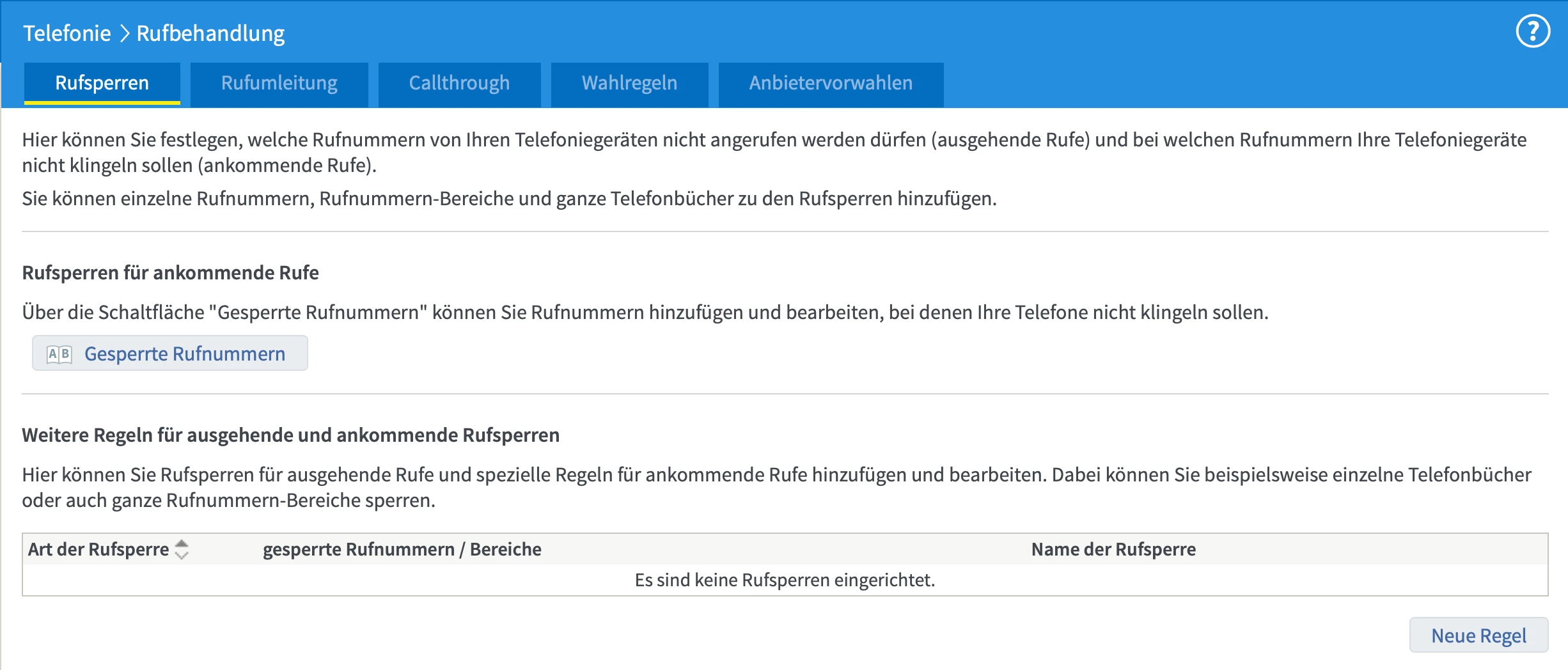 bei Fritzbox sind wie gesagt keine Sperren hinterlegt. Siehe Screenshot. Beim Versuch die Nummern anzurufen, wird »Anruf abgewiesen« angezeigt, auch siehe Screenshot.