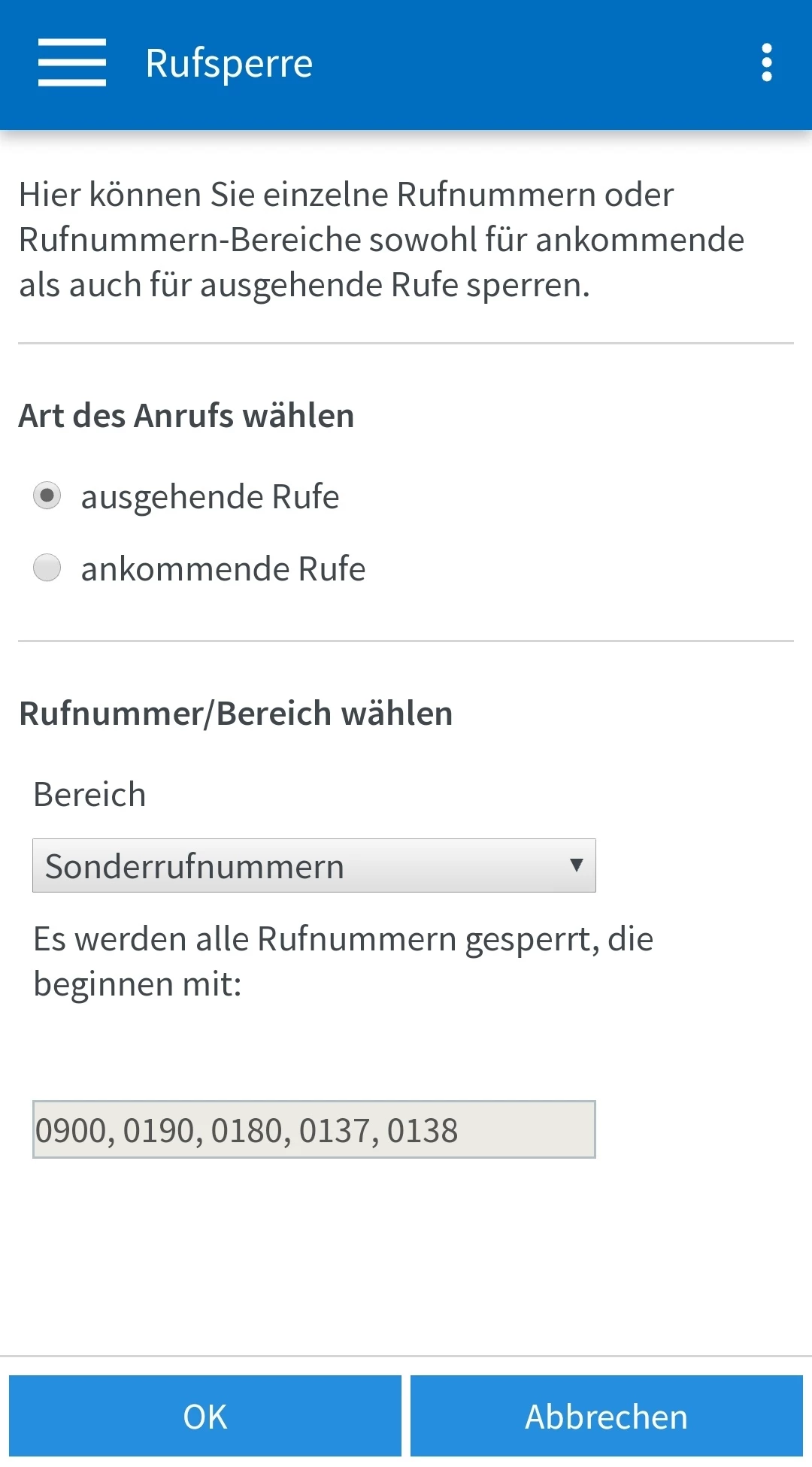 Rufnummern freischalten (01379 und 0900)