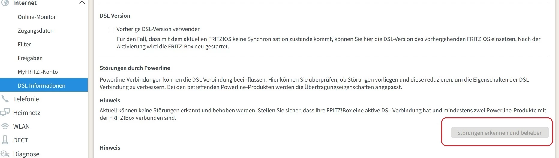Hallo ich befürchte ja. Mache bitte einen letzten Test wegen den DLAN Adapter unter DSL-Informationen/Störsicherheit.