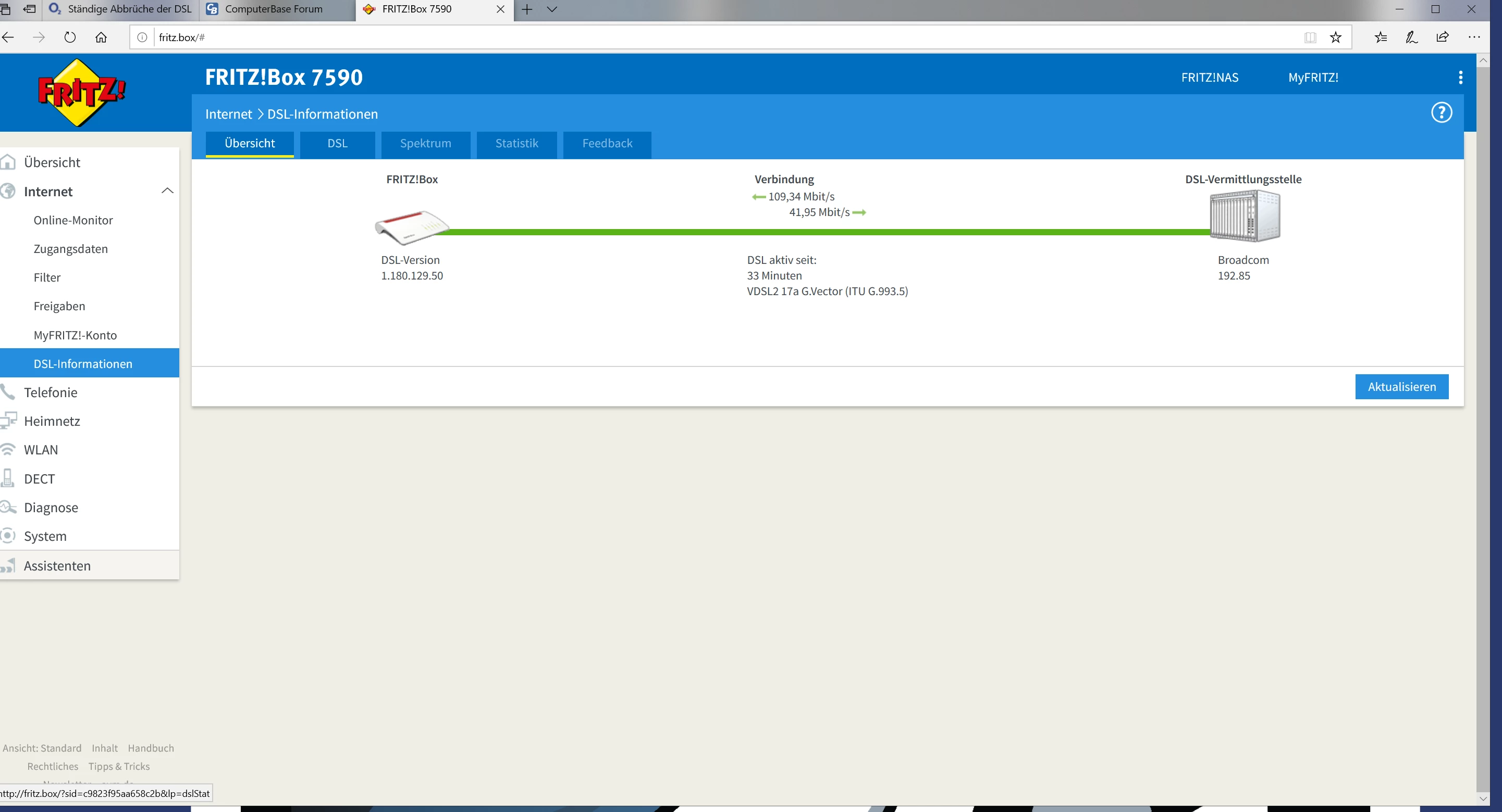 Welches Fritzbox Modell ist im Moment angeschlossen? (Bitte auch DSL Informationen/Reiter DSL als Screenshot posten)
