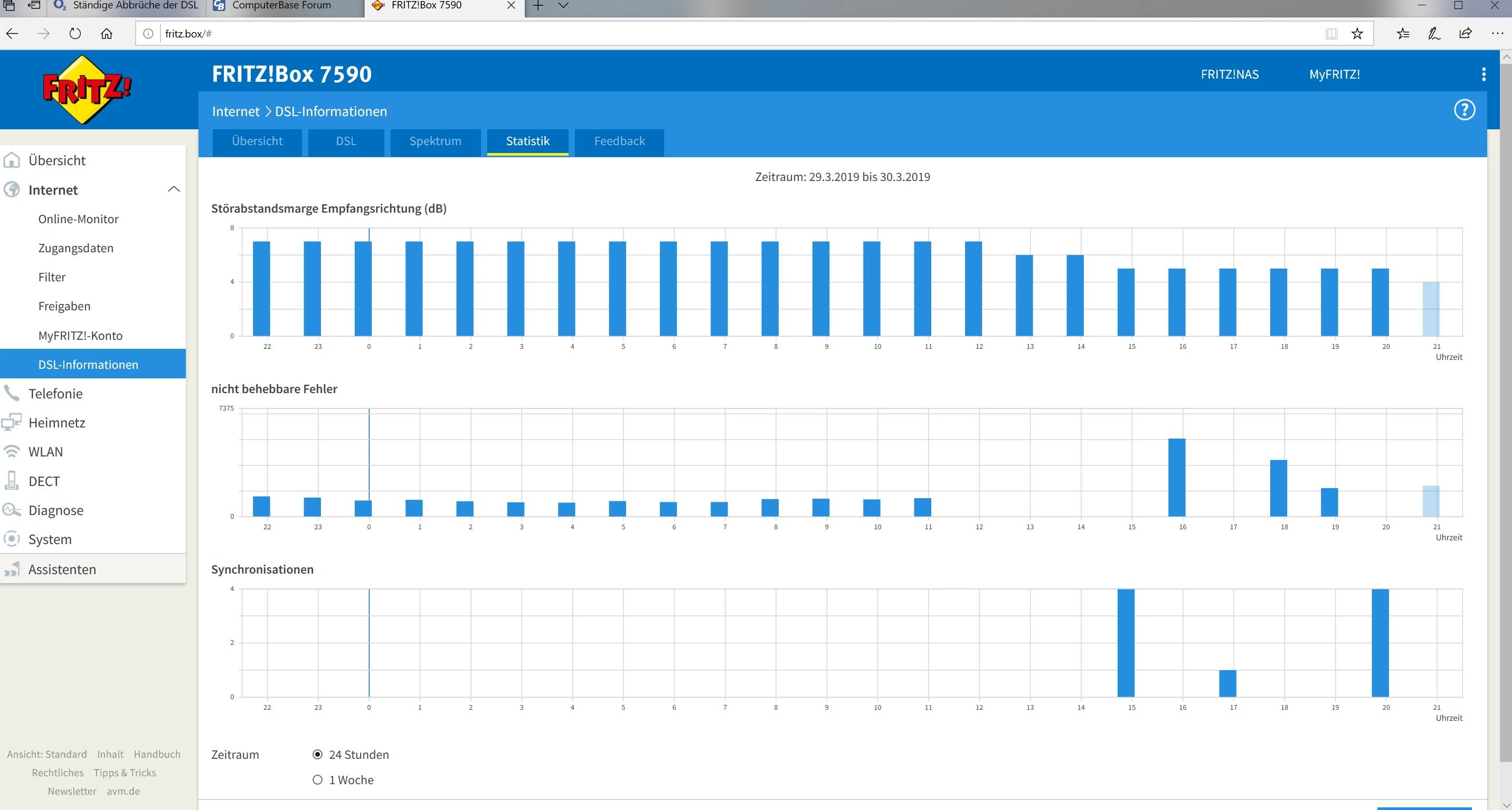 Seit ungefähr 10 Wochen verliert unsere Fritz-BOX andauernd die Synchronisation.