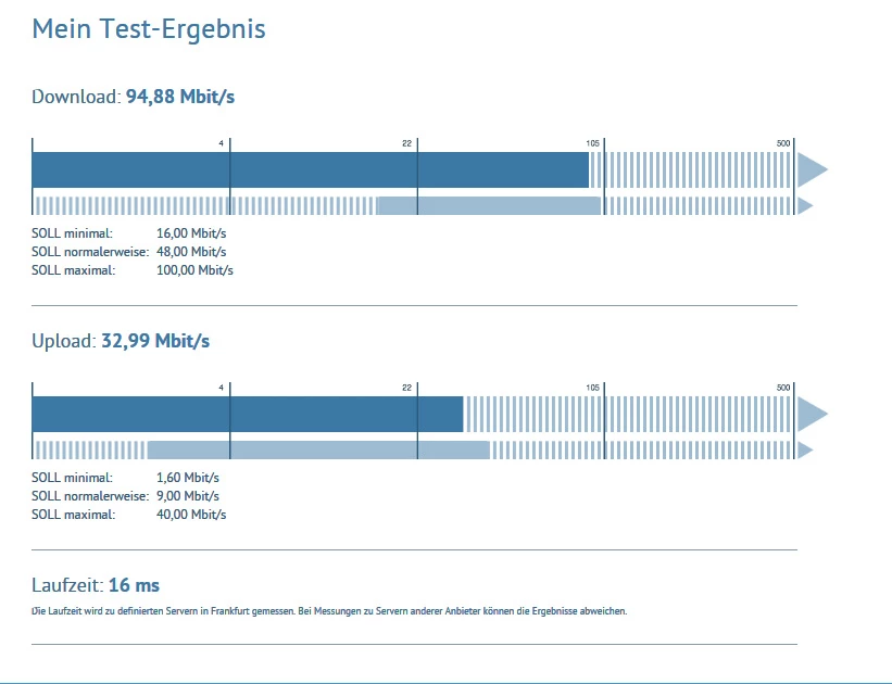 Nein, ich drücke mich absolut korrekt aus und da ist einfach noch nicht die volle Bandbreite freigeschaltet, wie gesagt, der Sync von 100/35 wurde schon vor der Vertragsänderung angezeigt, deshalb kam ich eigentlich auch erst auf die Idee meinen Vertrag upzugraden, das war nämlich nicht immer möglich.
