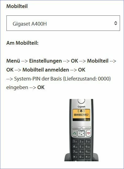 Das dürfte die Gigaset-Anleitung sein, die beschreibt, wie man das Mobiltteil an der Gigaset-Basis anmeldet - du besitzt die Gigaset-Basis aber gar nicht (sondern nur eine Ladeschale). Daher kann das nicht funktionieren.