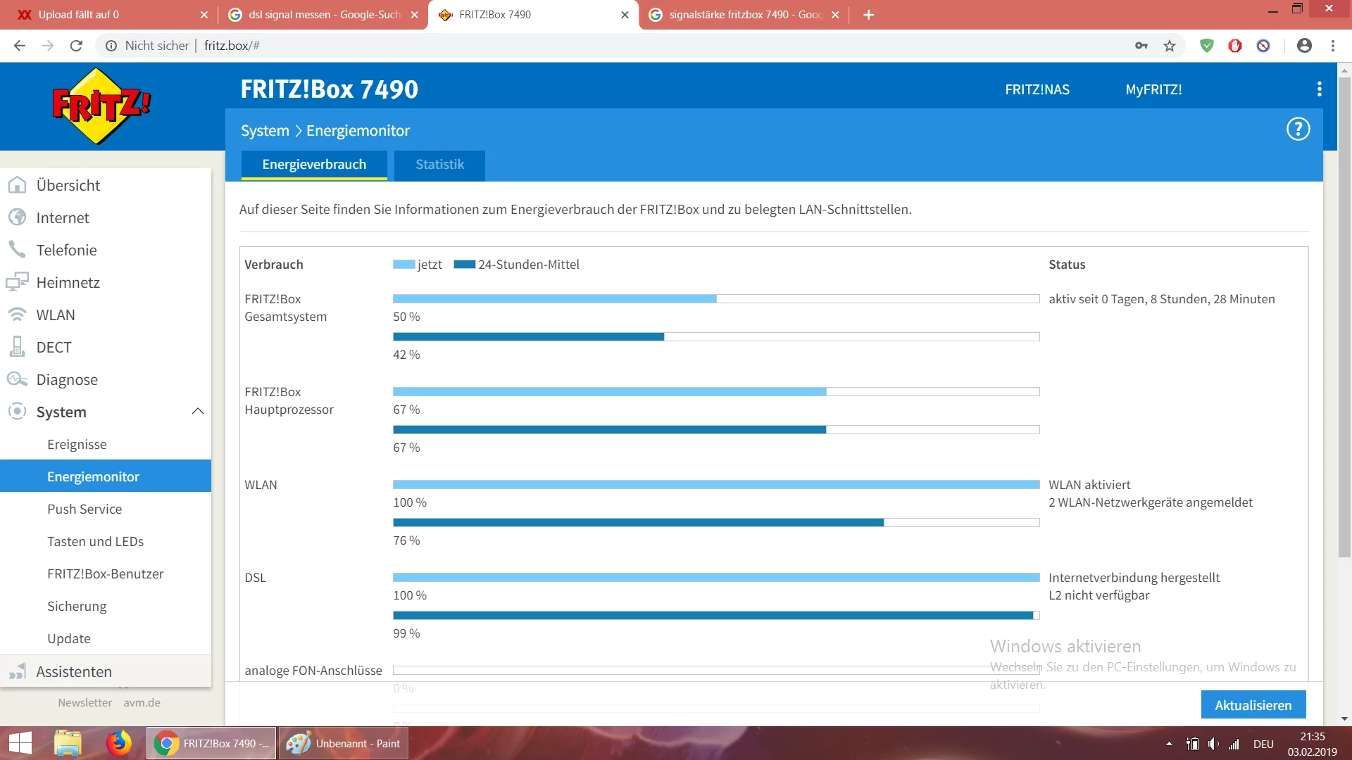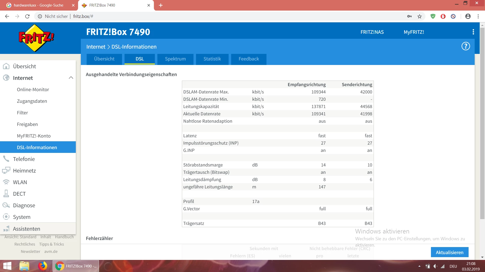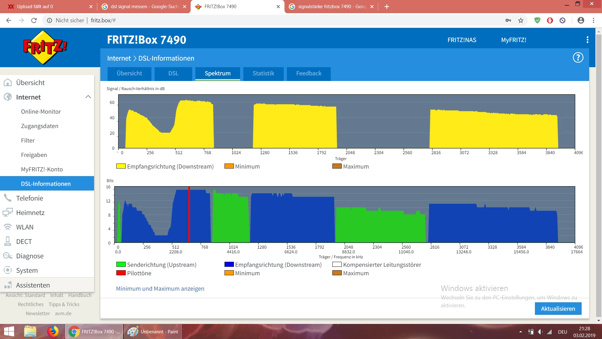 • Der Upload schwankt zwischen 28 und 48 Mbit/s (50k Leitung)
