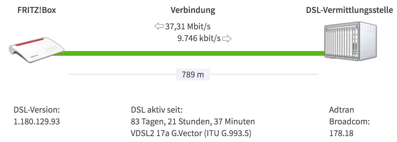 Kannst du mal den Screenshot der DSL Informationen hier hoch laden, dort wird der DSLAM Typ aufgeführt und deine ungefähre Leitungslänge in Metern dargestellt.