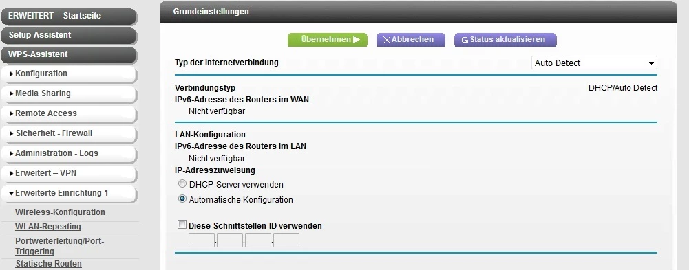 Wenn aber doch für Internet-Verbindung, dann in weiteren ScreenShot ist Auswahl von "Typ der Internetverbindung" zu sehen.
