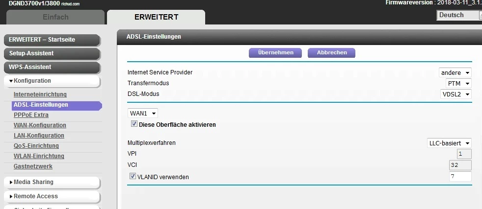 VDSL Netgear DGND3800B Modem Konfiguration / Einstellungen ?