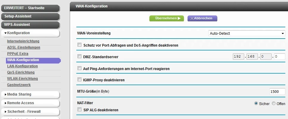 Was noch unter WAN-Voreinstellung zum Auswahl steht habe ich im hächsten ScreenShot.