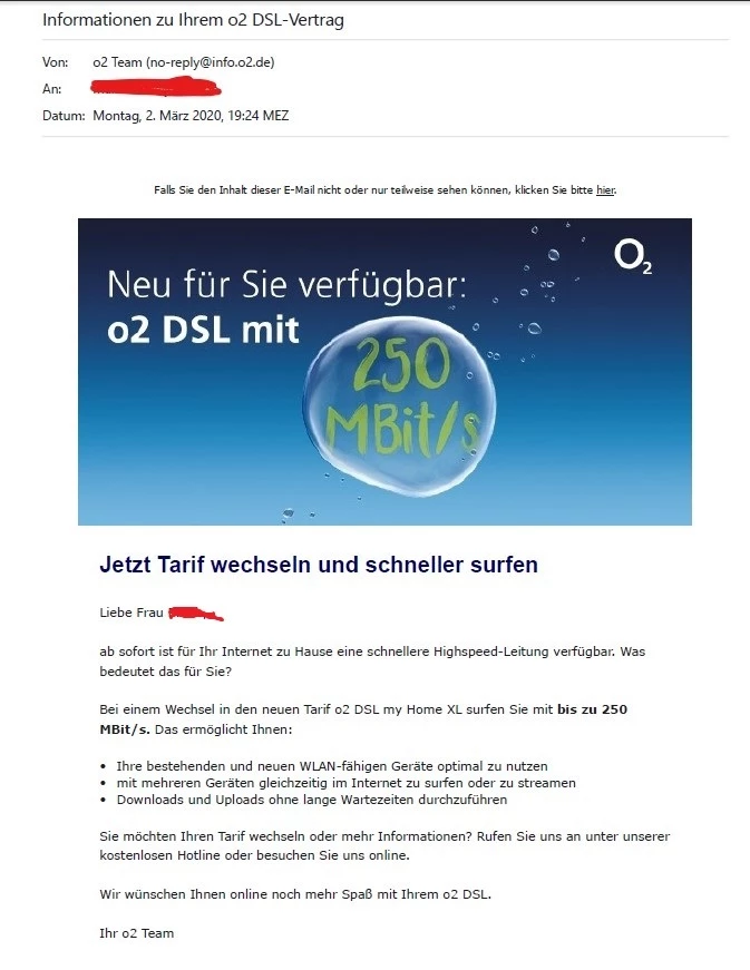 Hallo, ich habe gestern eine Mail erhalten mit einem DSL Tarifwechselangebot.
