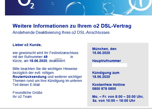 Danke Matze. Stand ist dennoch, dass mir O2 die Deaktivierung zum 18.6. schriftlich bestätigt hat. Nun soll der “Tarifwechsel” aber erst 2 Wochen später stattfinden…