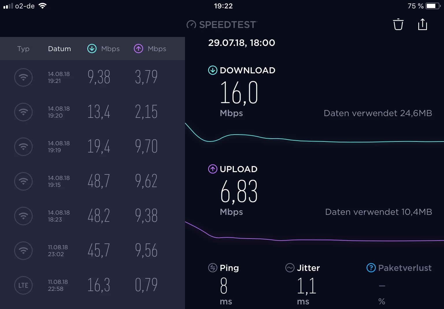 max 49,5 MBit/ 10 MBit gerade nochmal gescheckt
