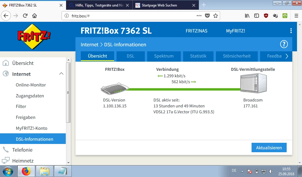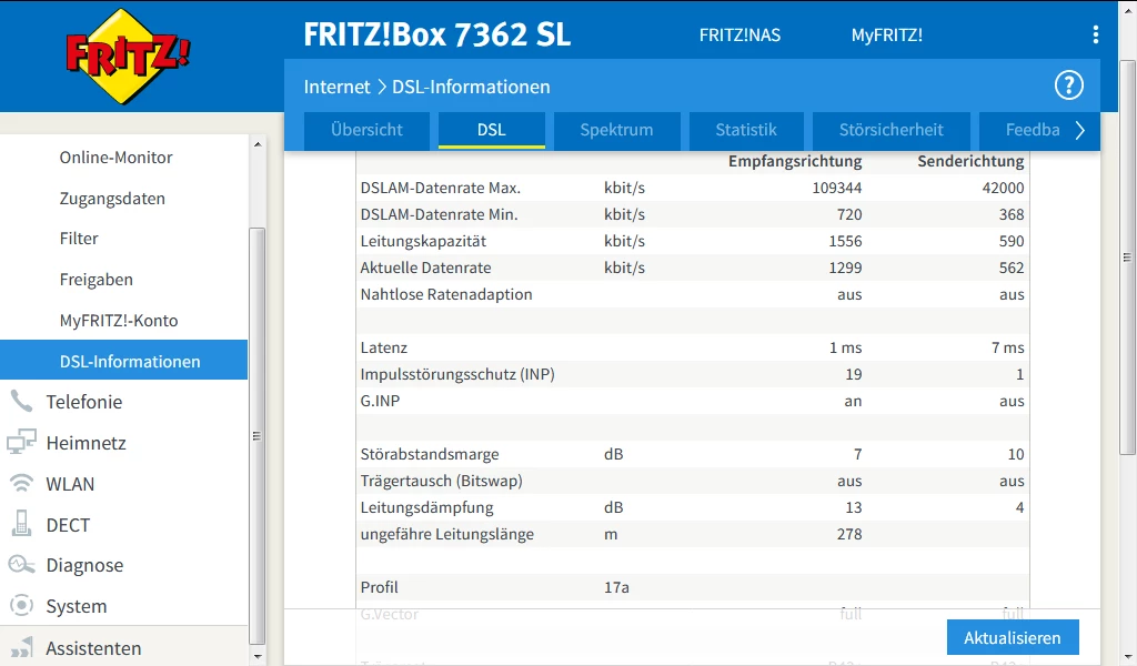 Ich benutze eine FRITZ!Box 7362 SL (UI)/1&1 Homeserver 50.000 mit FritzOS 07.00.