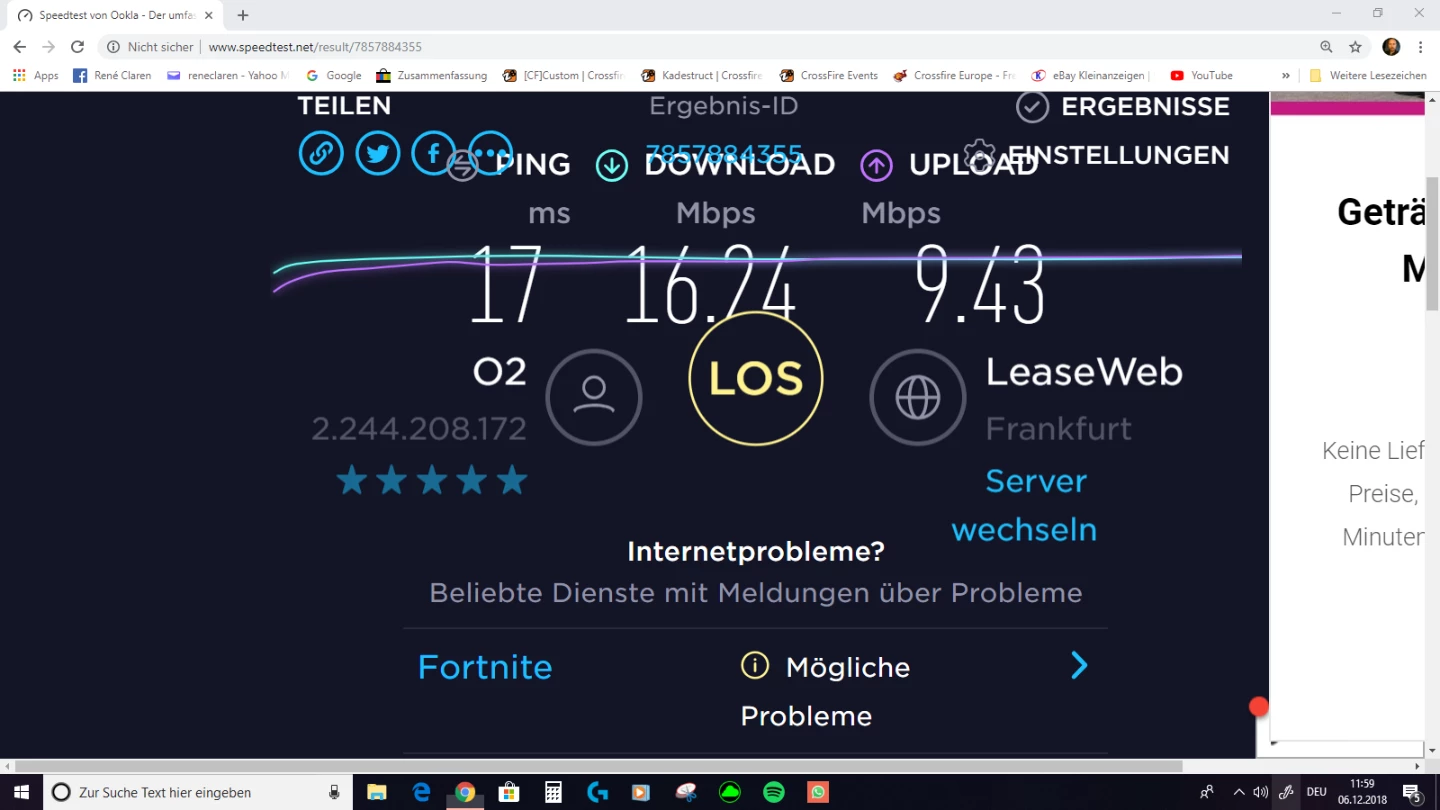 Hotline sagt mir es wurde auch gemessen, aber ich muss jedes W-Lan gerät ausmachen um Netflix oder ähntlich flüssig laufen zu haben. Dabei habe ich von 6k auf 50k gewechselt damit dies nicht mehr der Fall sein muss. Dann meinte der Fritze an der Hotline dass dies an meinem Rechner liegen würde obwohl ich einen Hochleistungrechner mit 64gb Ram und Intel 7.1 habe. Der sollte eigentlich in der Lage sein die Messung gut durchführen zu können.
