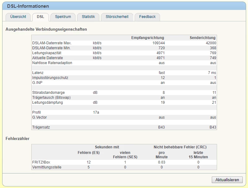 Was sagt die Fritzbox denn unter Internet DSL Information Reiter DSL?