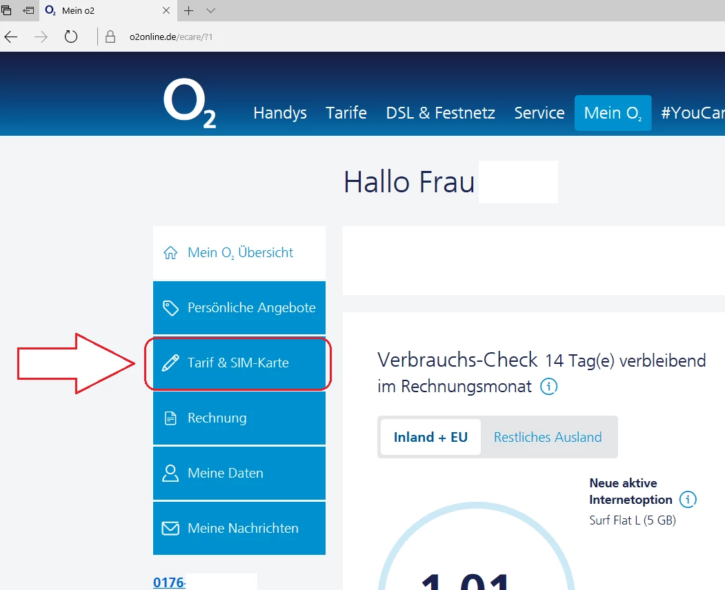 Im Regelfall geht man auf o2.de--Meino2--Tarif & SIM-Karte--Tarifdetails und neben der Option auf Ändern.