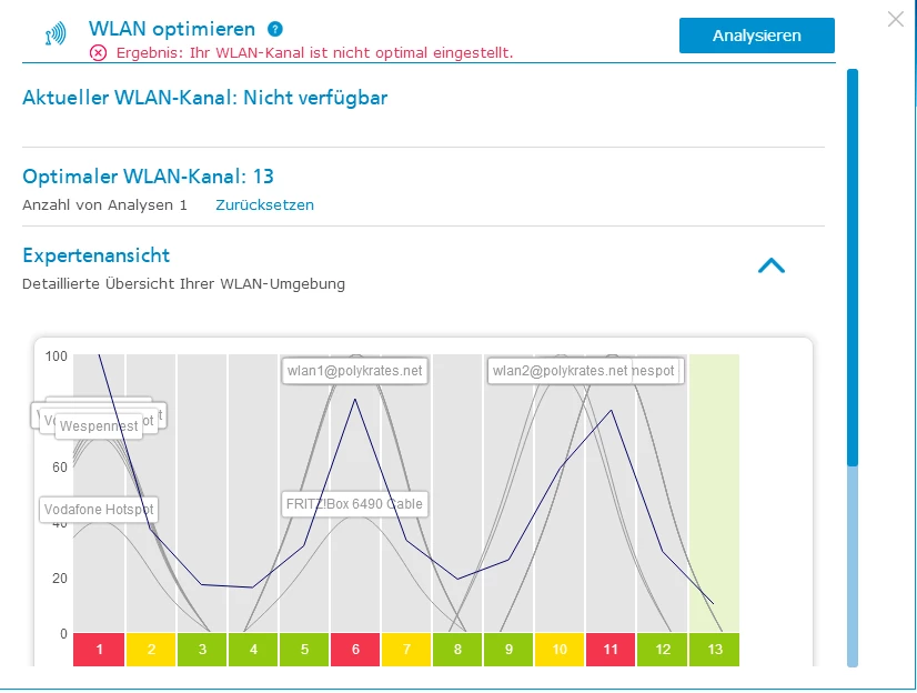 Wenn Du ein Android hast kannst Du auch Wifi Analyzer – Apps bei Google Play  verwenden.