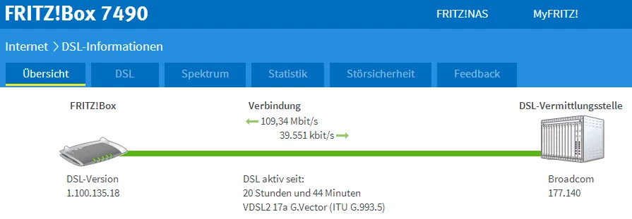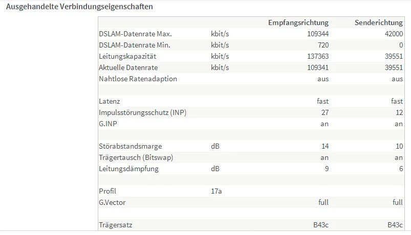 Ich bin mir nicht sicher, ob ich die richtigen Infos der FBox angehängt habe (DSL-Info und ausgehandelte Verbindungseigenschaften). Falls nicht, bitte kurz den Pfad beschreiben.