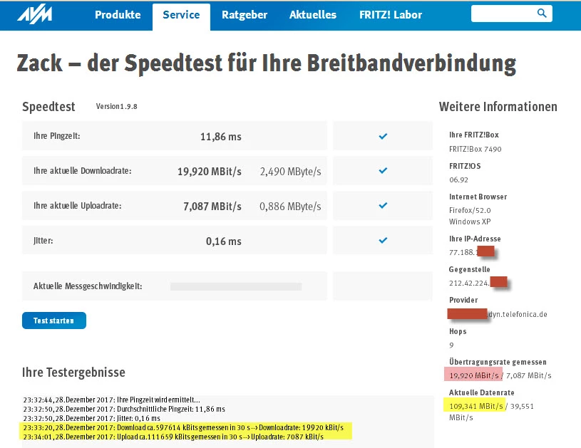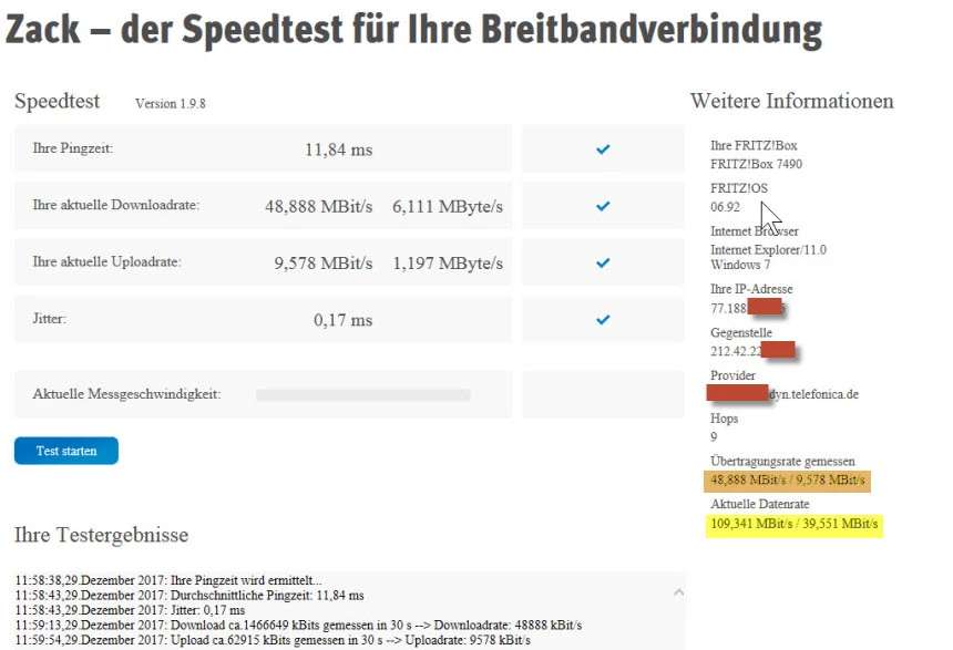 - Speedtest unbedingt mit Lan-Kabel machen.