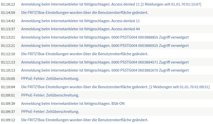hier nochmal die Logs der Fritzbox und der Status der Fritzbox.